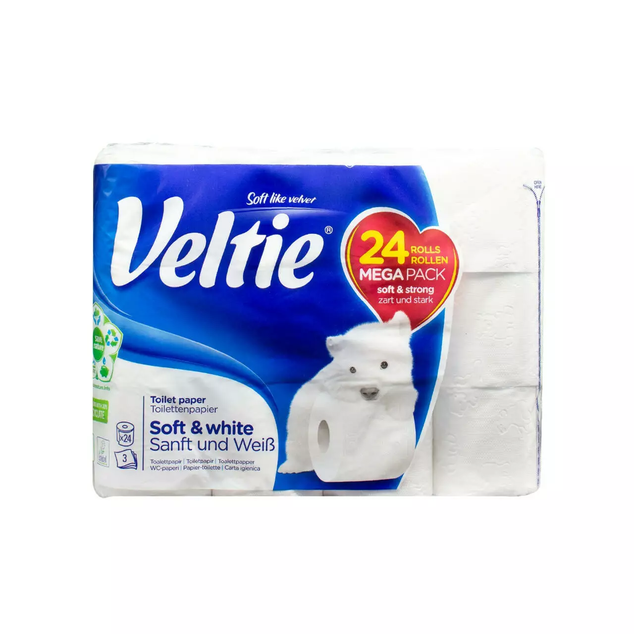 Veltie туалетний папір Soft White 24 рулони, 3 шари - ваш надійний і комфортний вибір для щоденної гігієни.