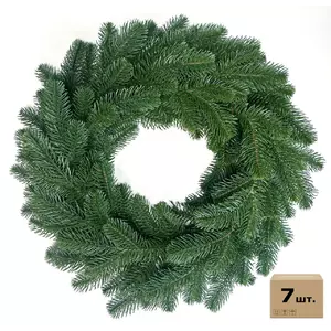 Венок также отлично сочетается с хвойной гирляндой, создавая единую стильную композицию. Упаковка содержит 7 венков, что делает их идеальным выбором как для собственного декорирования пространства, так и для профессионального оформления кафе, ресторанов, витрин или офисов.
