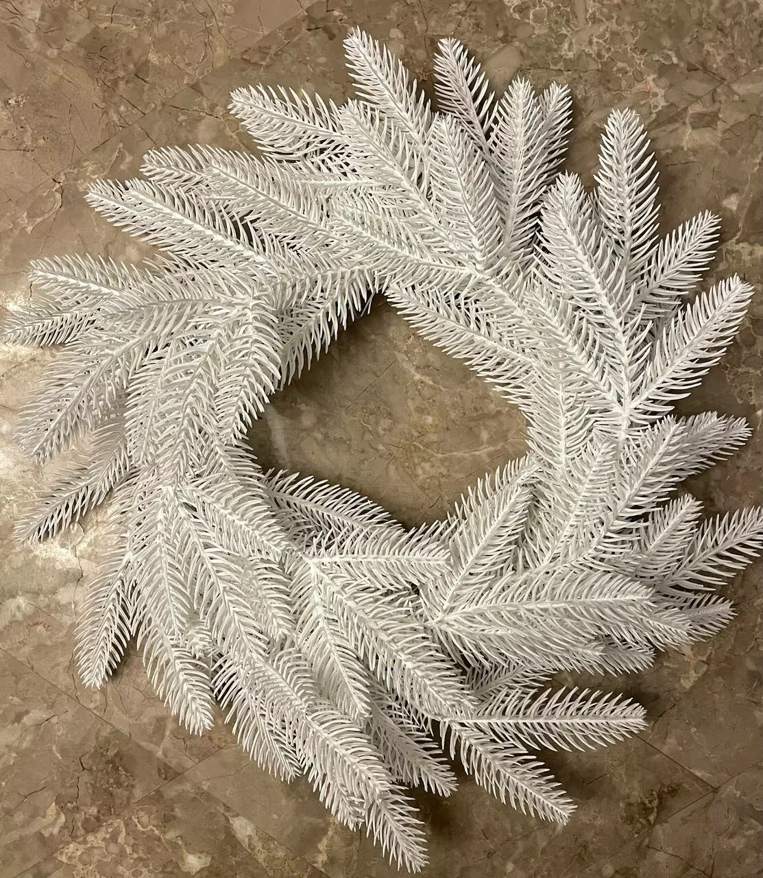 Венок рождественский Classic изготовлен из переплетённых искусственных еловых веток белого цвета серии Classic. Хвоя 100% литая поэтому выглядит как 3D-имитация ветки живой ёлки
