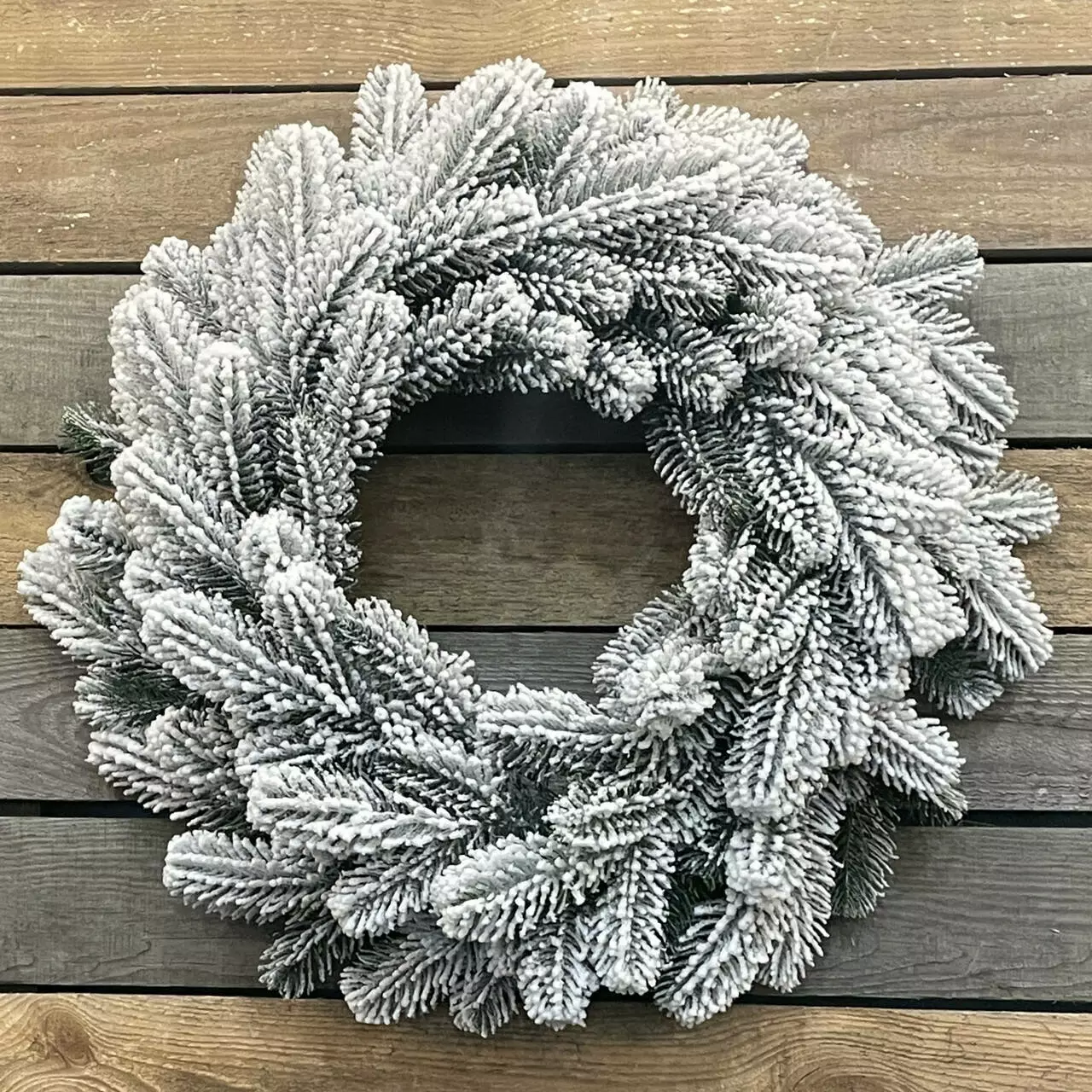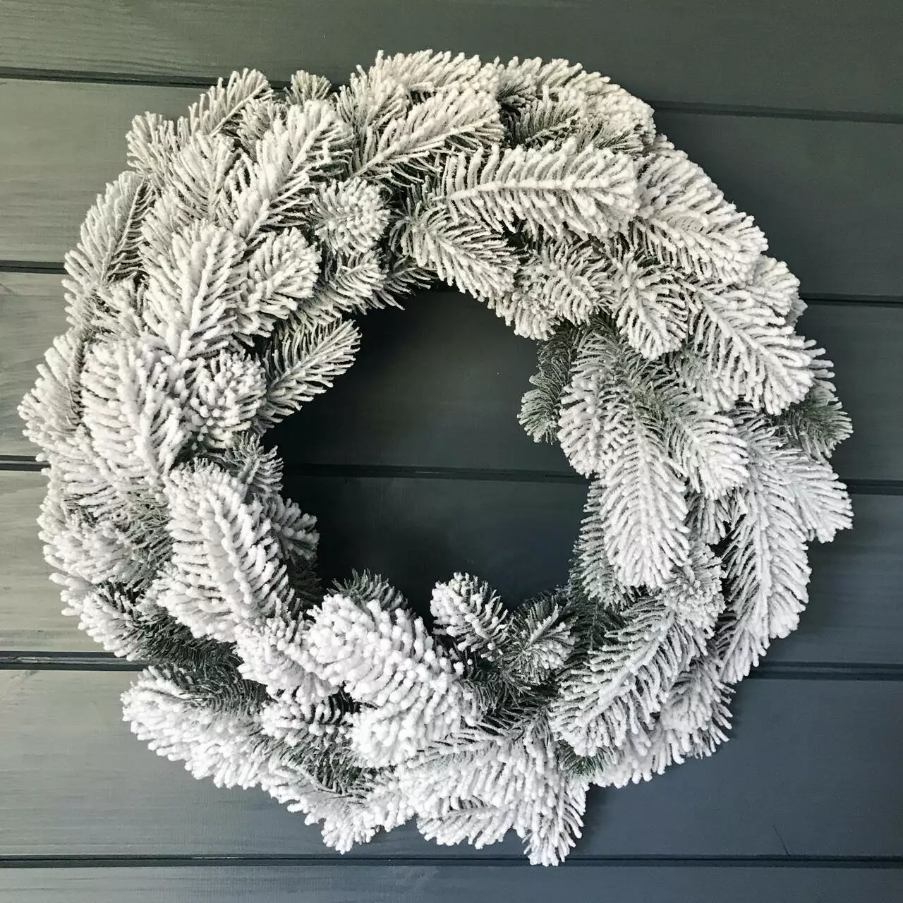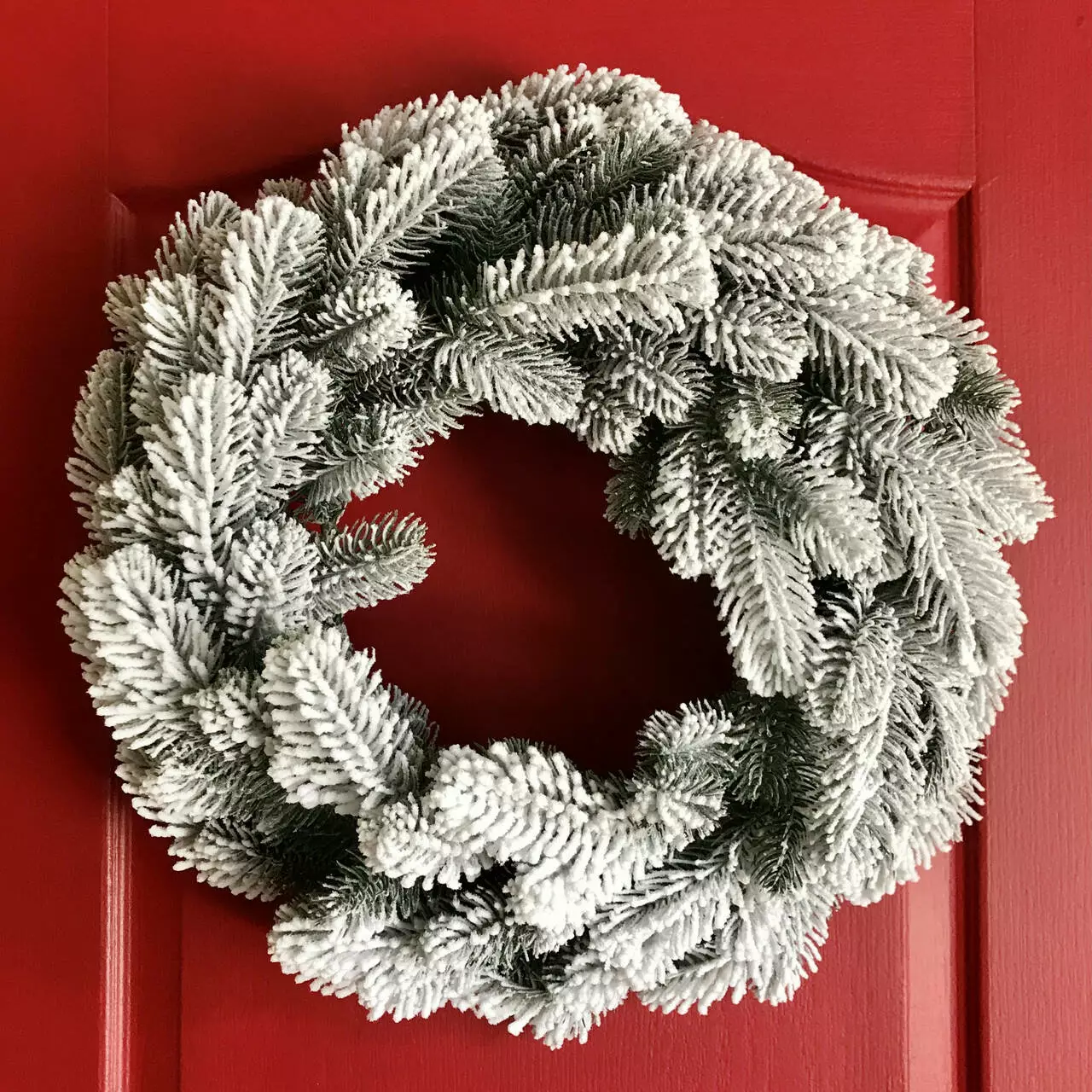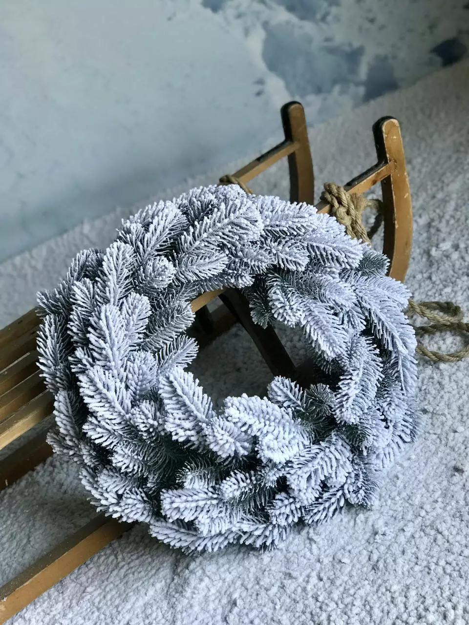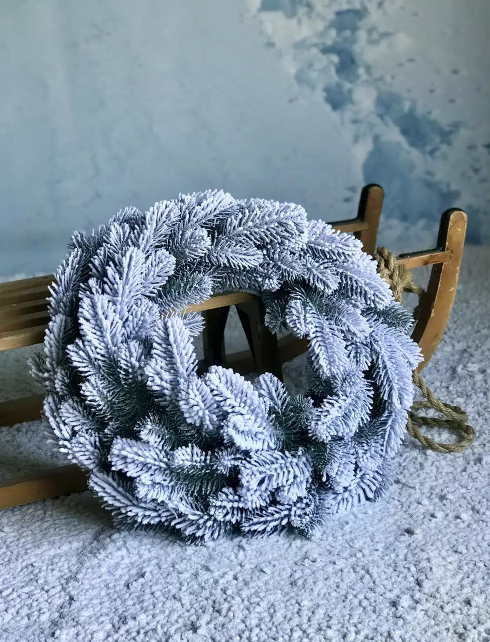 Декоративный рождественский венок изготовлен из переплетенных веток искусственной елки. Он изготовлен из 100% литой хвои, а его иголочки напоминают живую елку, но они более мягкие и не колючие. Объемное густое напыление на венке, реалистично имитирует снег, только что упавший на ветки пушистыми хлопьями. Материалом распыления является натуральный хлопок, он экологичен и не имеет запаха, безопасен для детей и взрослых.
