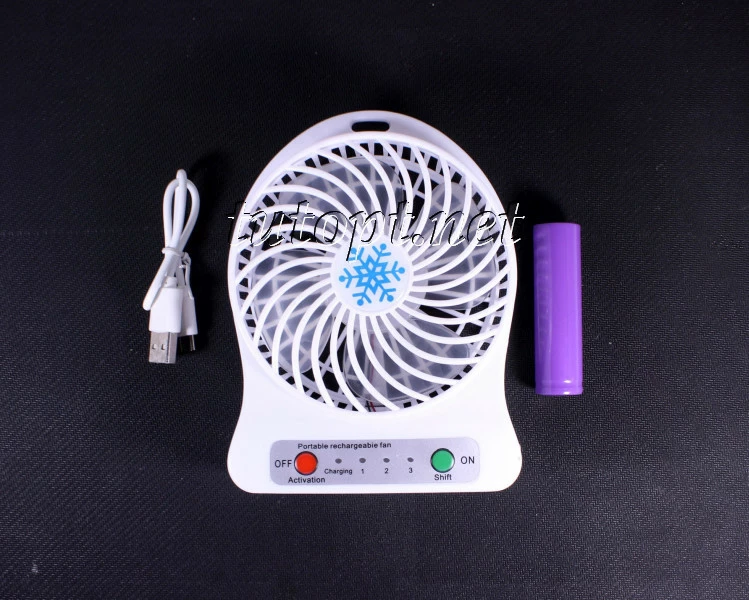 Технические характеристики: Ручной вентилятор аккумуляторный Работает от аккумулятора Можно установить на подставку Мощность - 4,5W; Источник питания: аккумулятор съемный li-lon 18650 Материал: пластик. Длина - 20 см; Диаметр лопастей - 9 см. Комплектация: Вентилятор Аккумулятор 18650 Шнур USB для зарядки аккумулятора Подставка