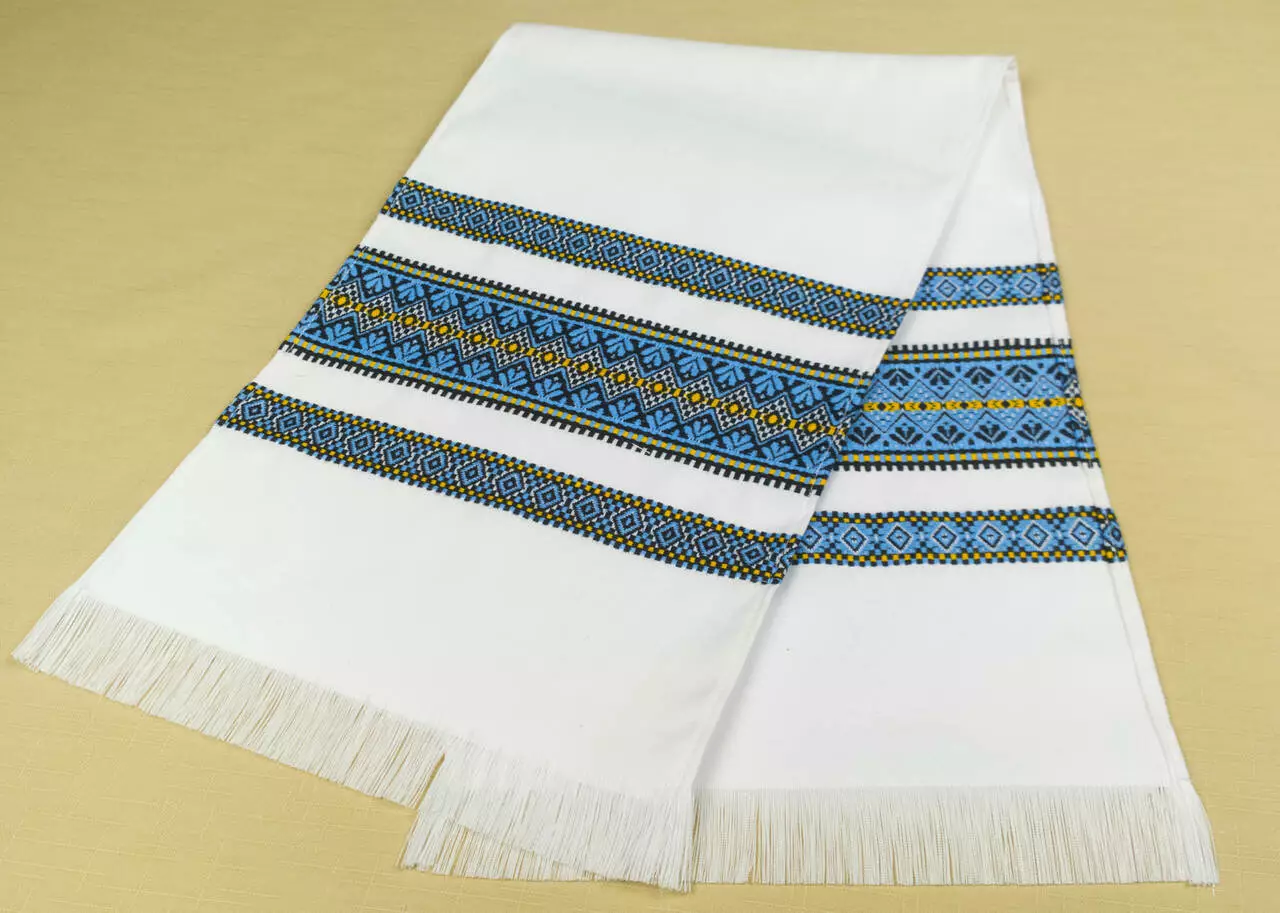 Традиційний синій рушник з вишивкою, який часто використовується в українських обрядах.