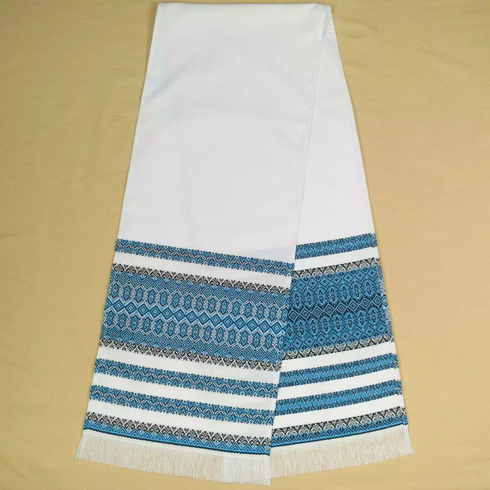 Синій весільний рушник під ноги, який часто використовується в українських обрядах.