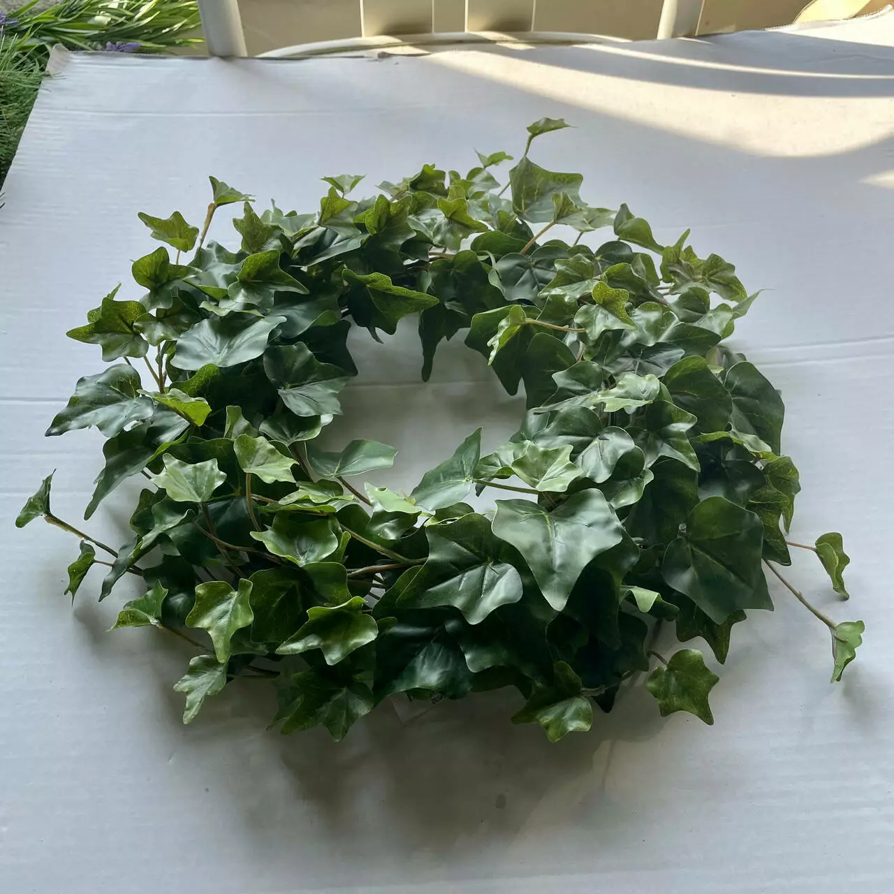 Вінок із штучного плюща - елегантний аксесуар здатний додати затишку, весняного настрою та свіжості у ваш дім. Легкий та простий у використанні, його можна розмістити на дверях, вікнах чи стінах.