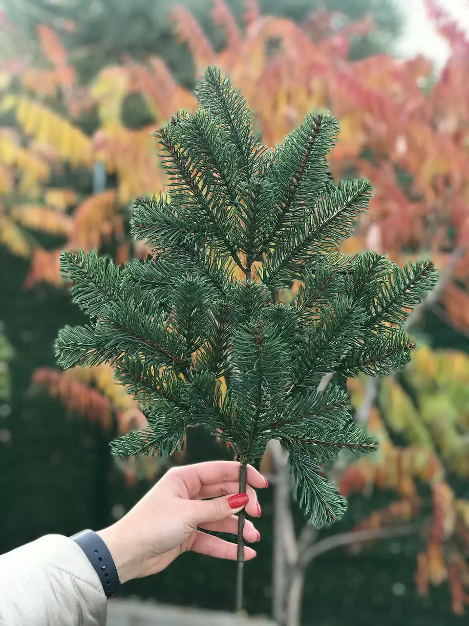 Пушистая ветка ели из 32 маленьких литых веточек хвои с гибким армированным каркасом выглядит настолько реалистично, что с первого взгляда невозможно догадаться, что она искусственная.