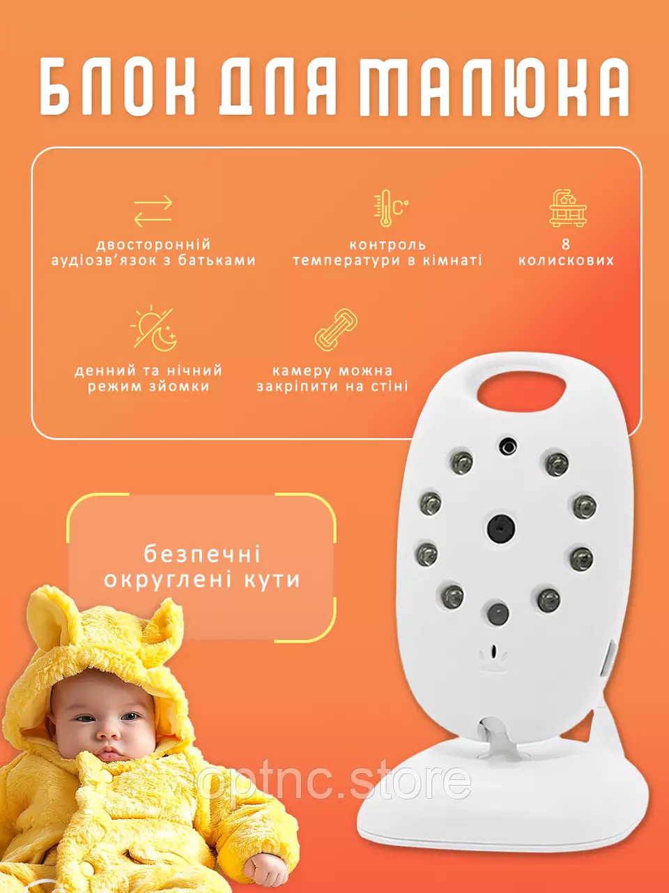 1 родительский блок (монитор с экраном);; 1 детский блок (камера);; 2 зарядных блока (один для родительского блока и один для детского блока);; Руково