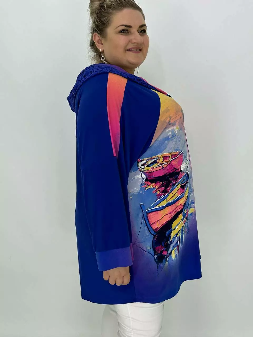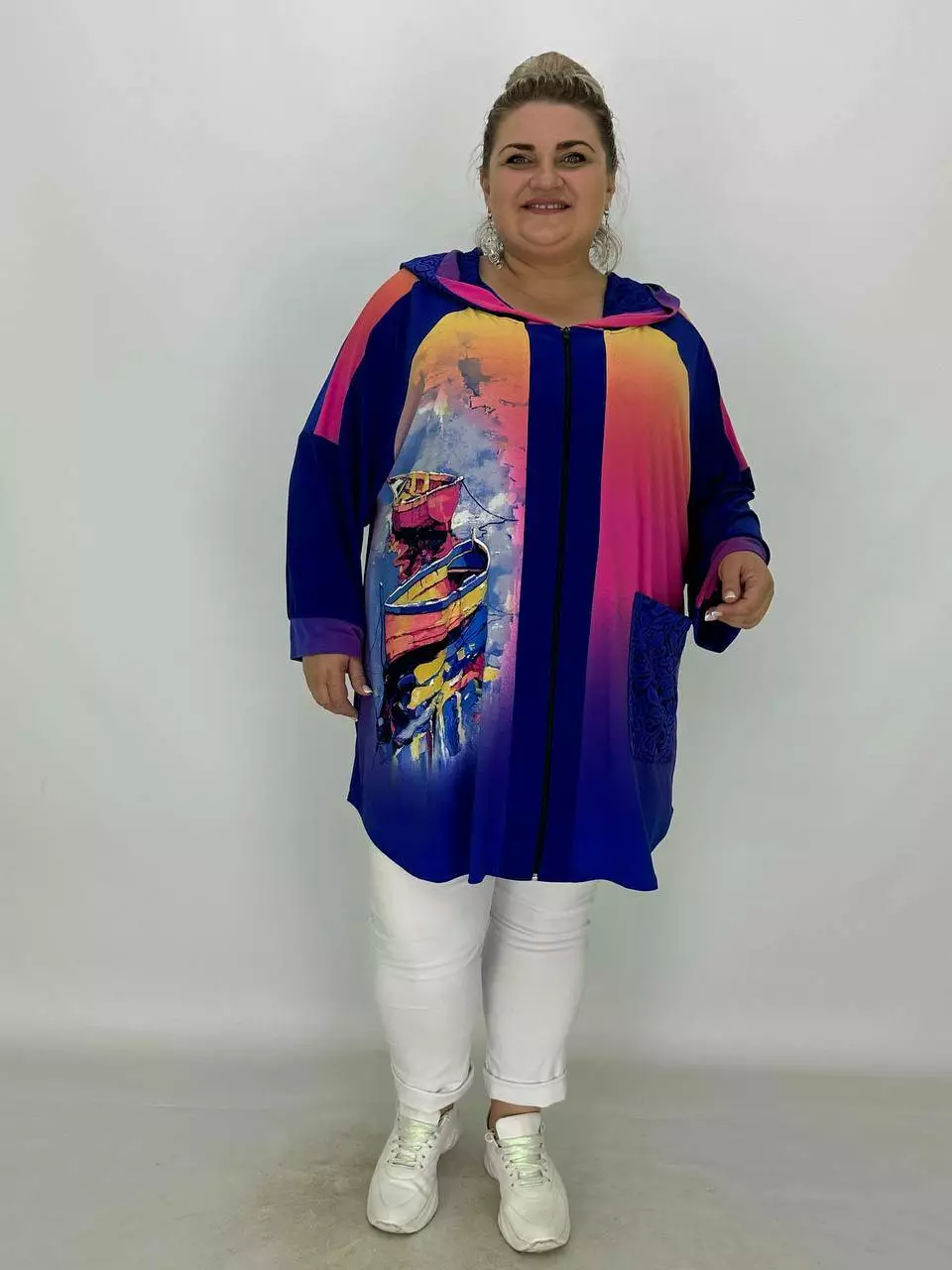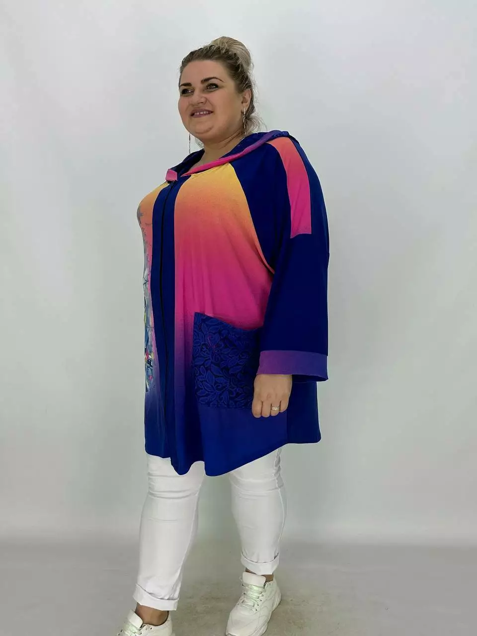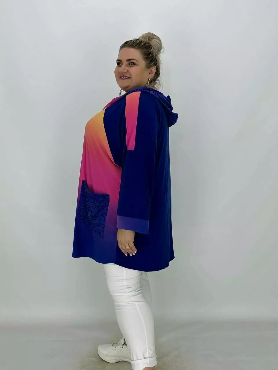 Вільна кофта на змійки з корейської олії з ажурним капюшоном та кишенями.