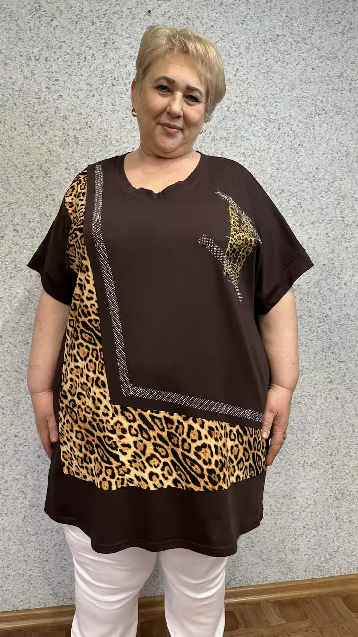Вільна подовжена бавовняна туніка "Мара" великого розміру 62-64 66-68 70-72 74-76