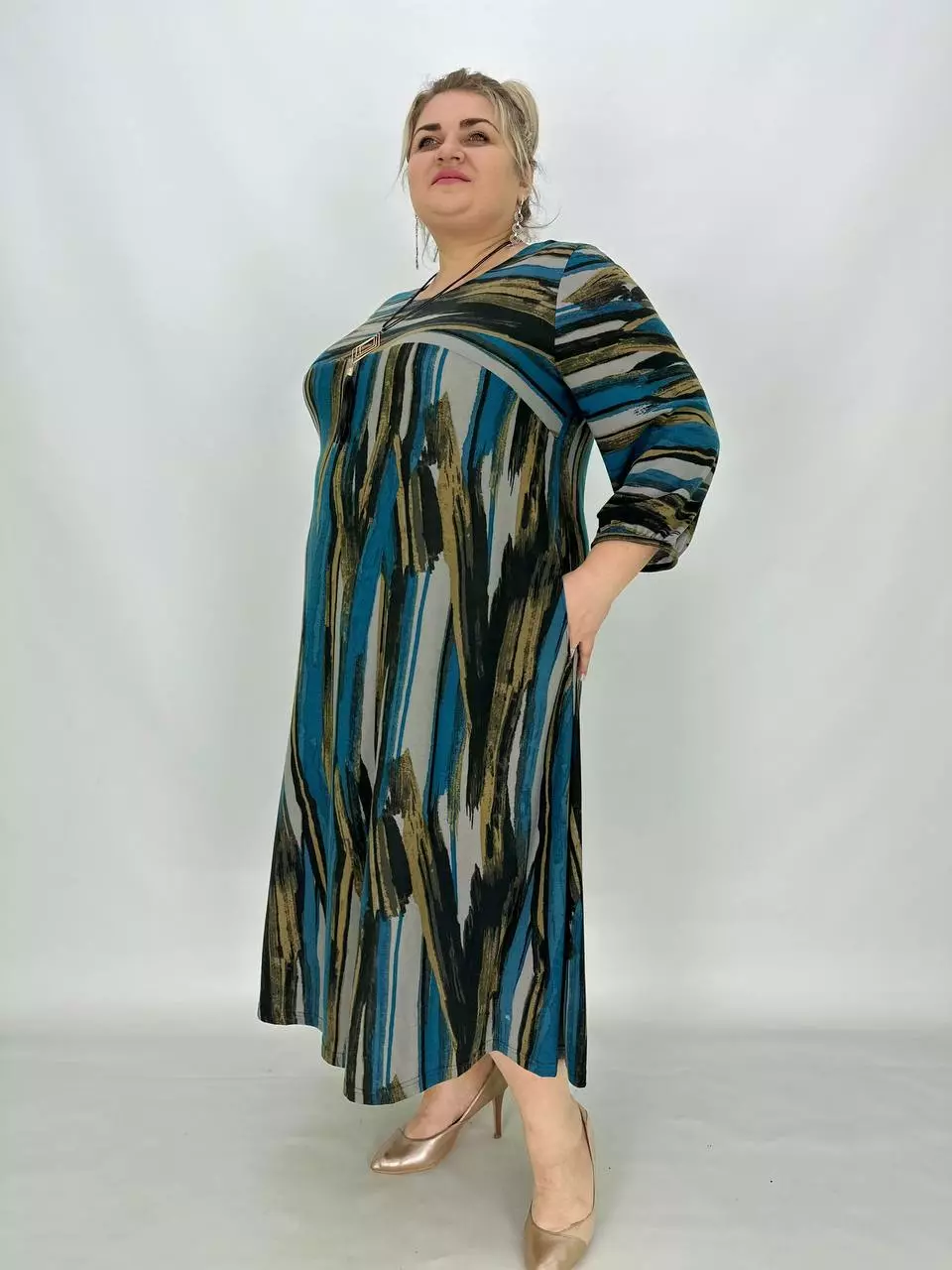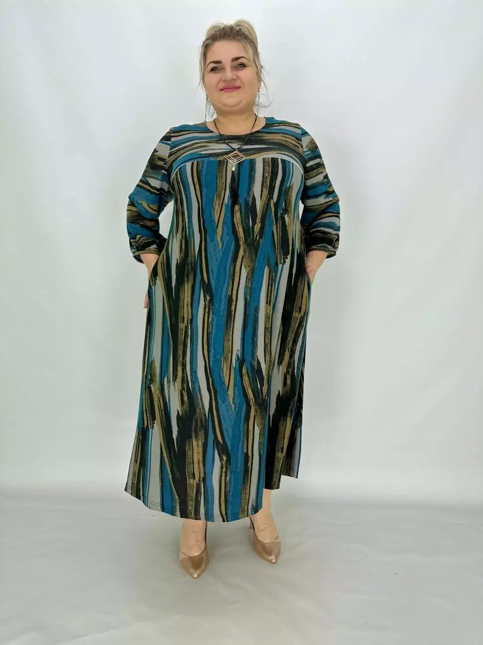 Вільна сукня, А-подібний силует, кишені у бічних швах.