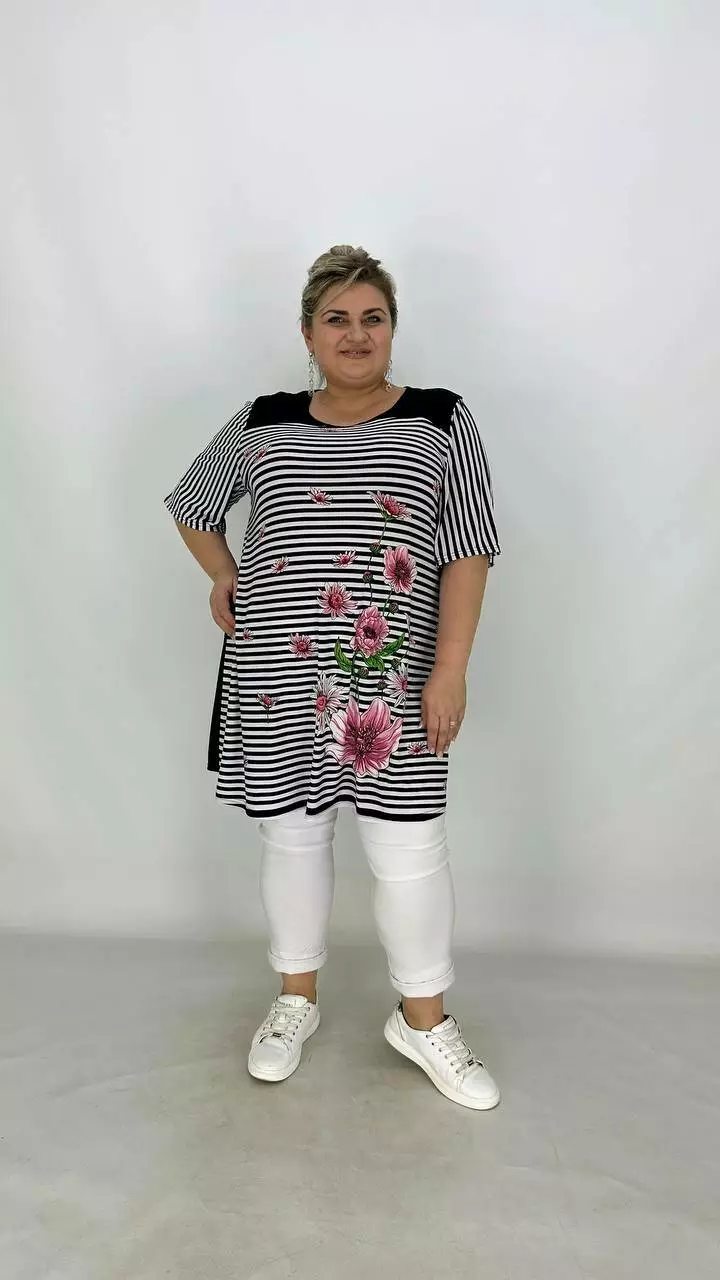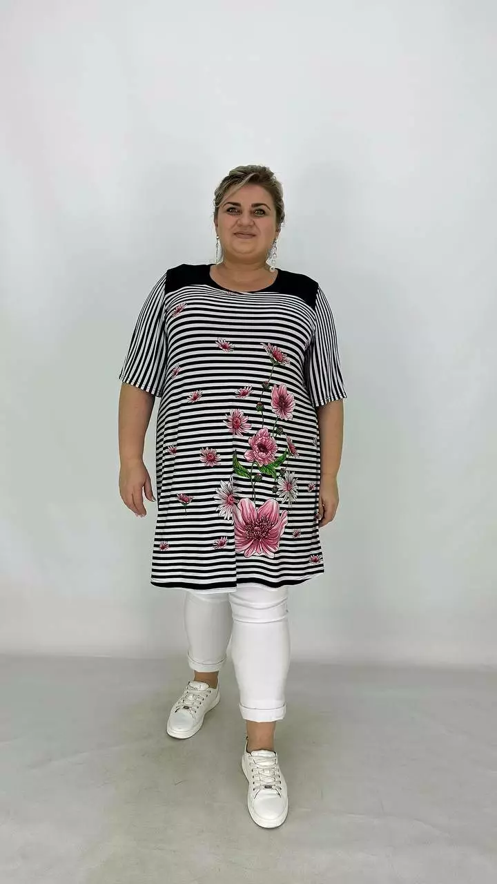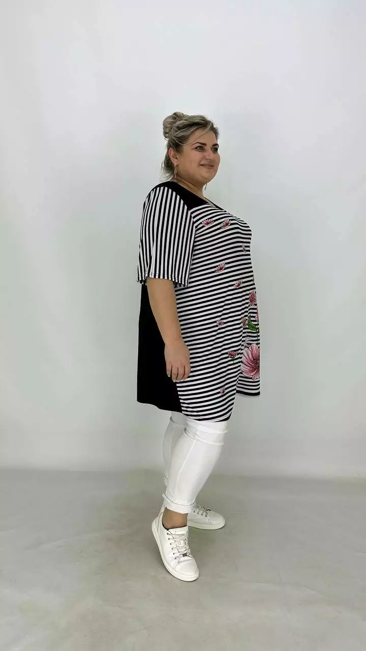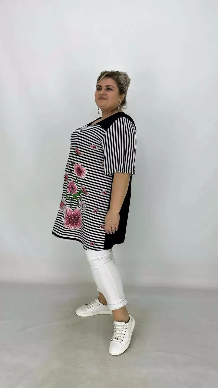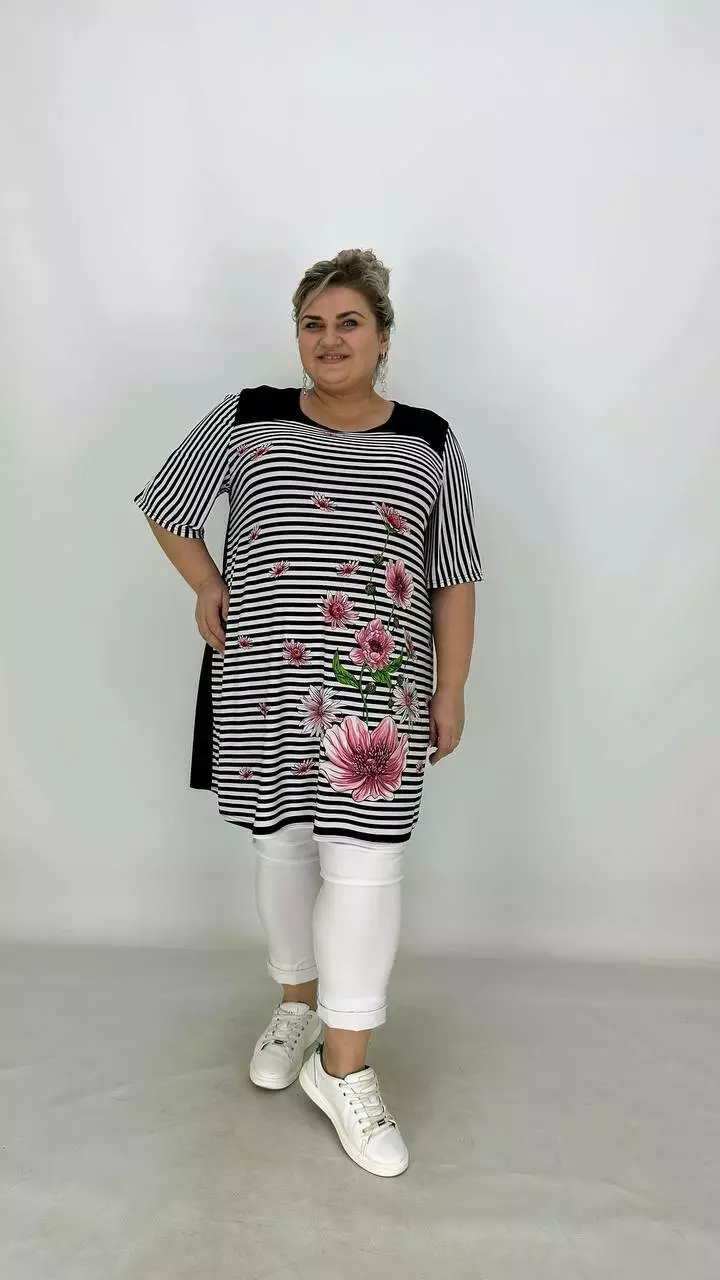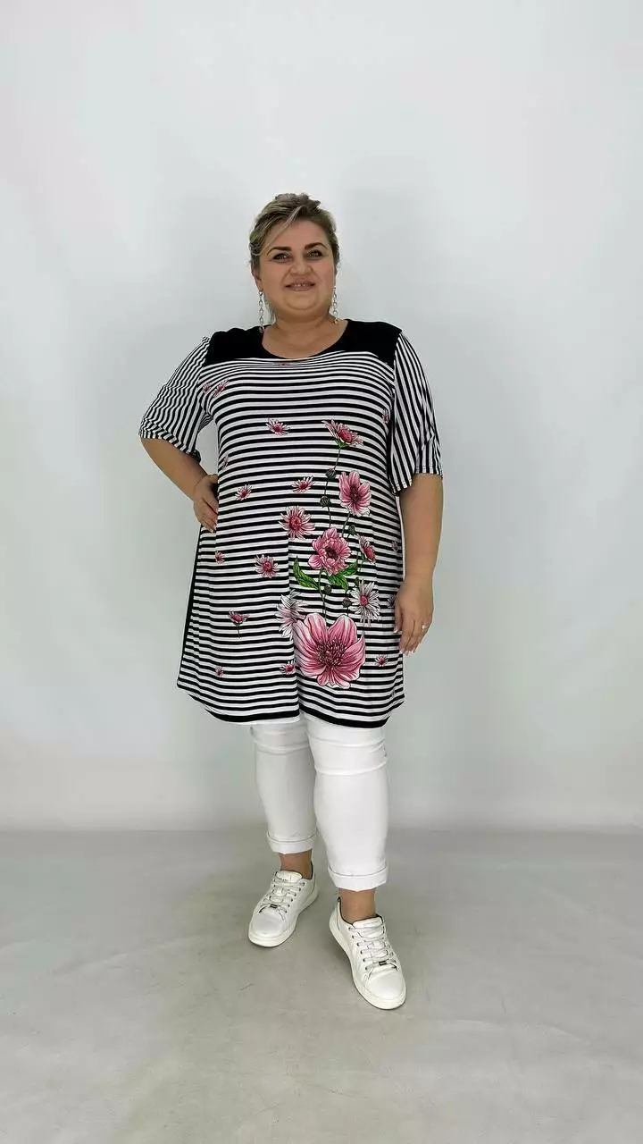 Вільна туніка з корейської олії з гарною розтяжністю, тканина якісний трикотаж, не жаркий, не мнеться, не вимагає особливого догляду, рукав втачний.