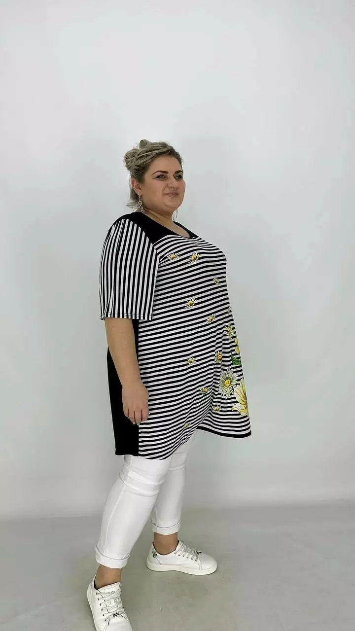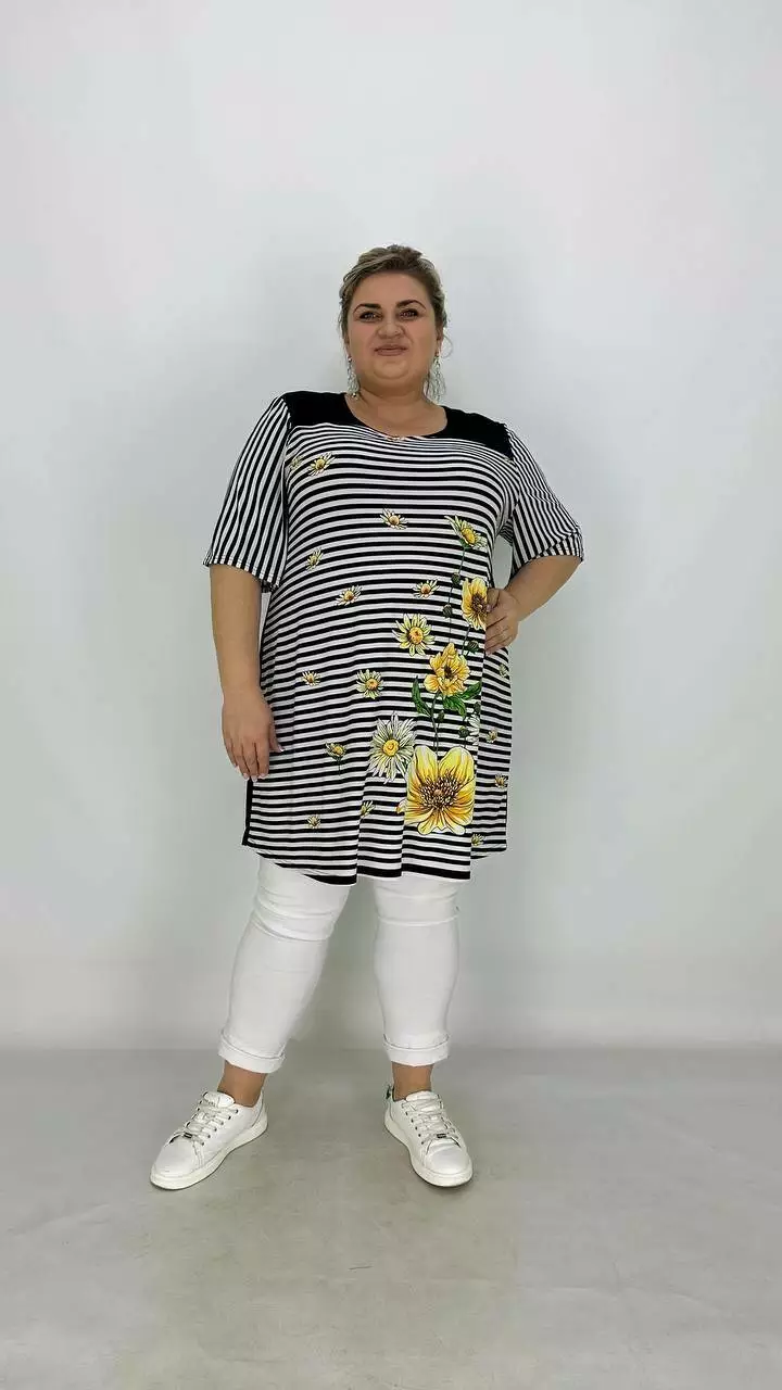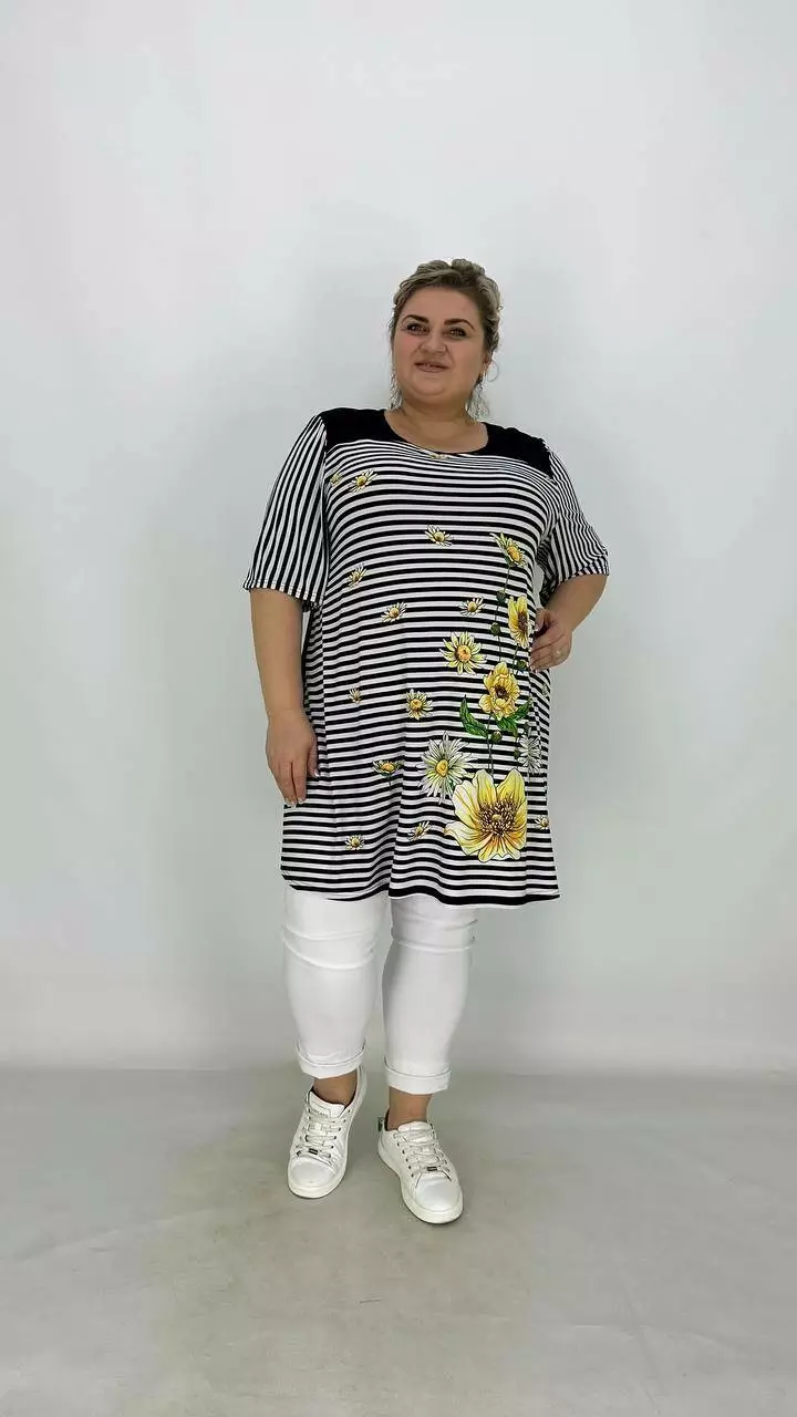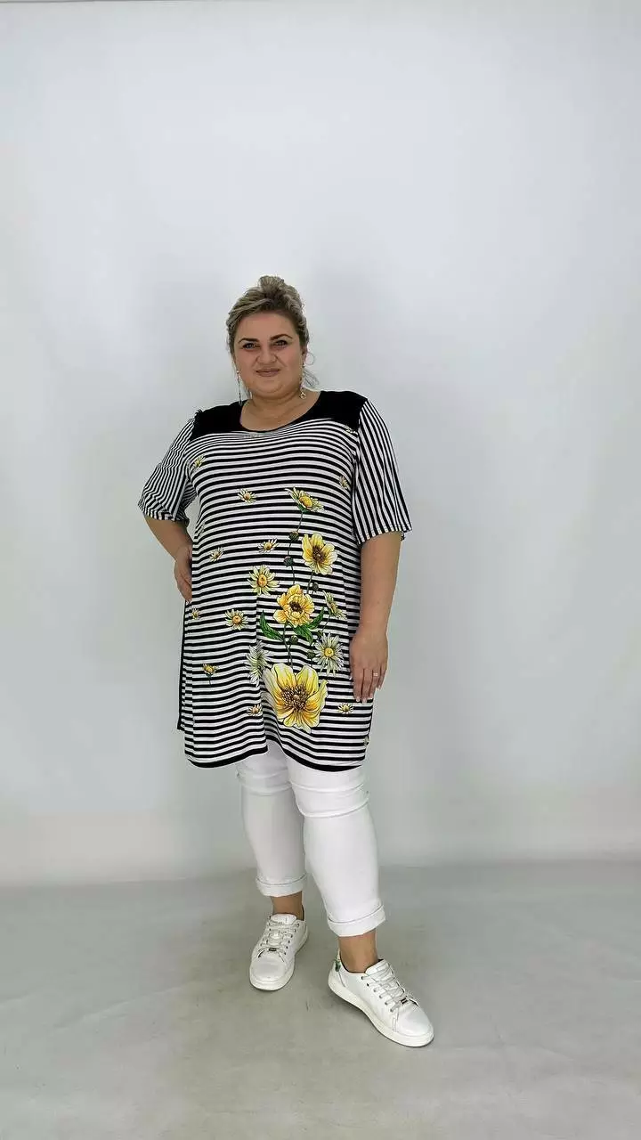 Вільна туніка з корейської олії з гарною розтяжністю, тканина якісний трикотаж, не жаркий, не мнеться, не вимагає особливого догляду, рукав втачний.