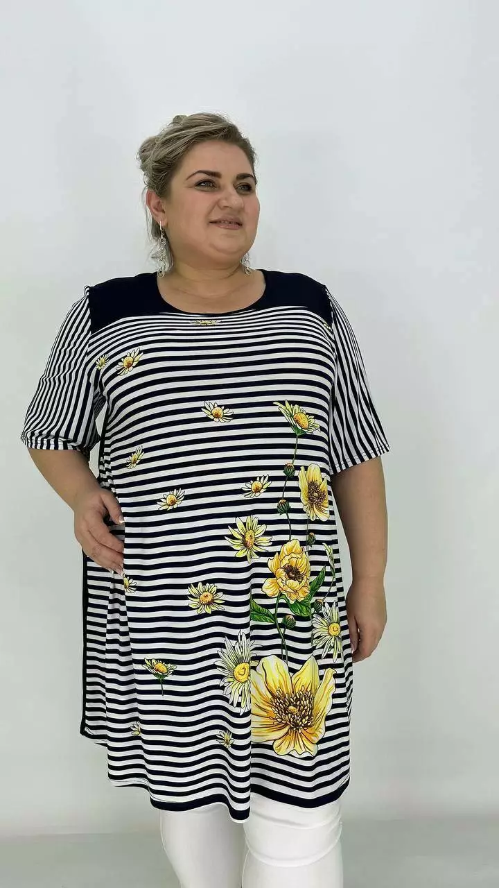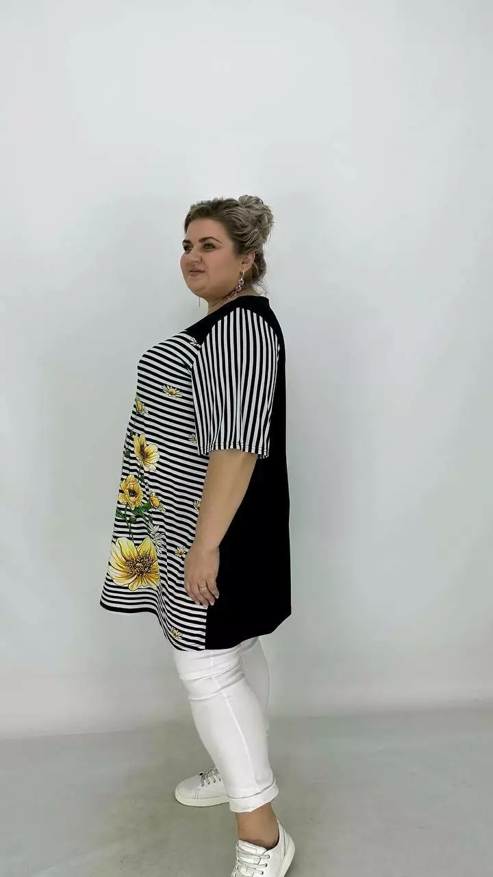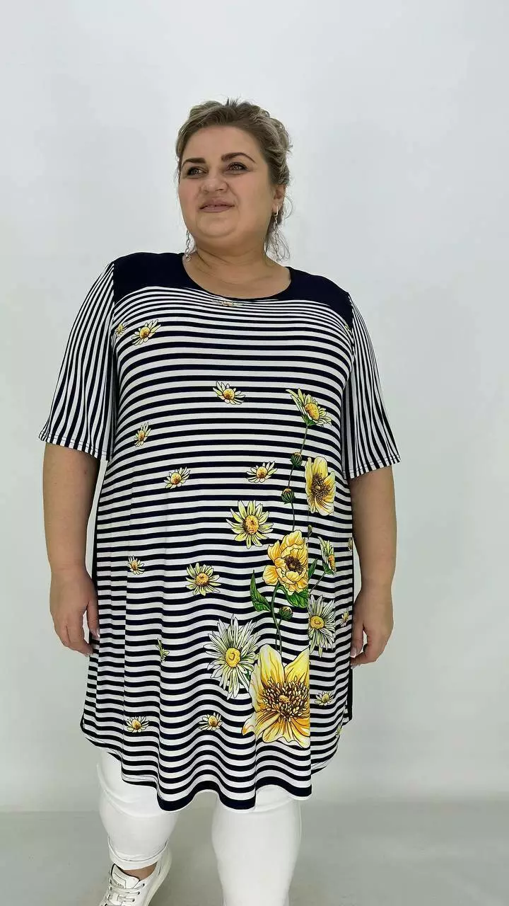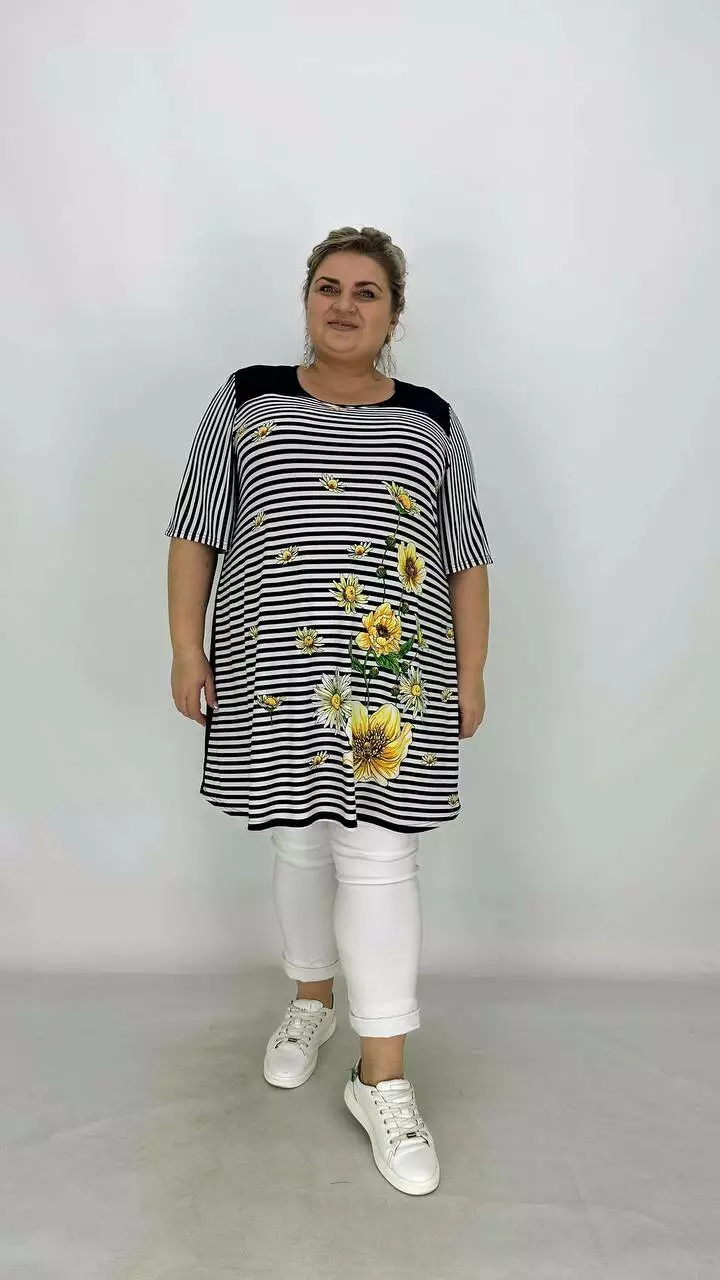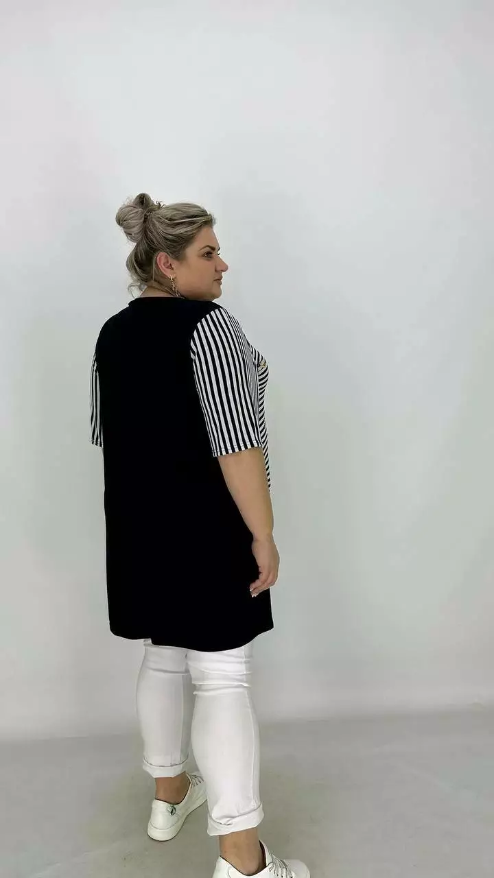 Вільна туніка з корейської олії з гарною розтяжністю, тканина якісний трикотаж, не жаркий, не мнеться, не вимагає особливого догляду, рукав втачний.