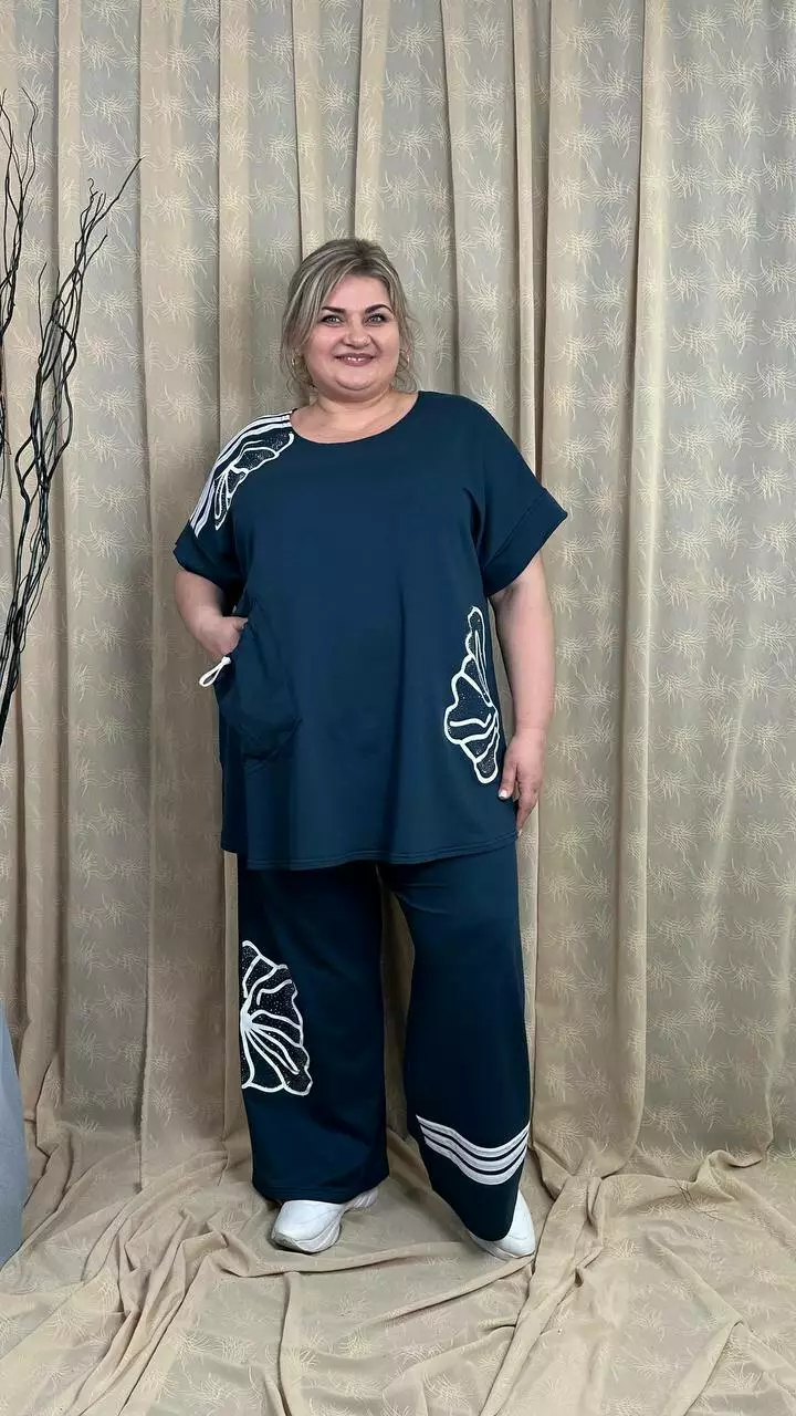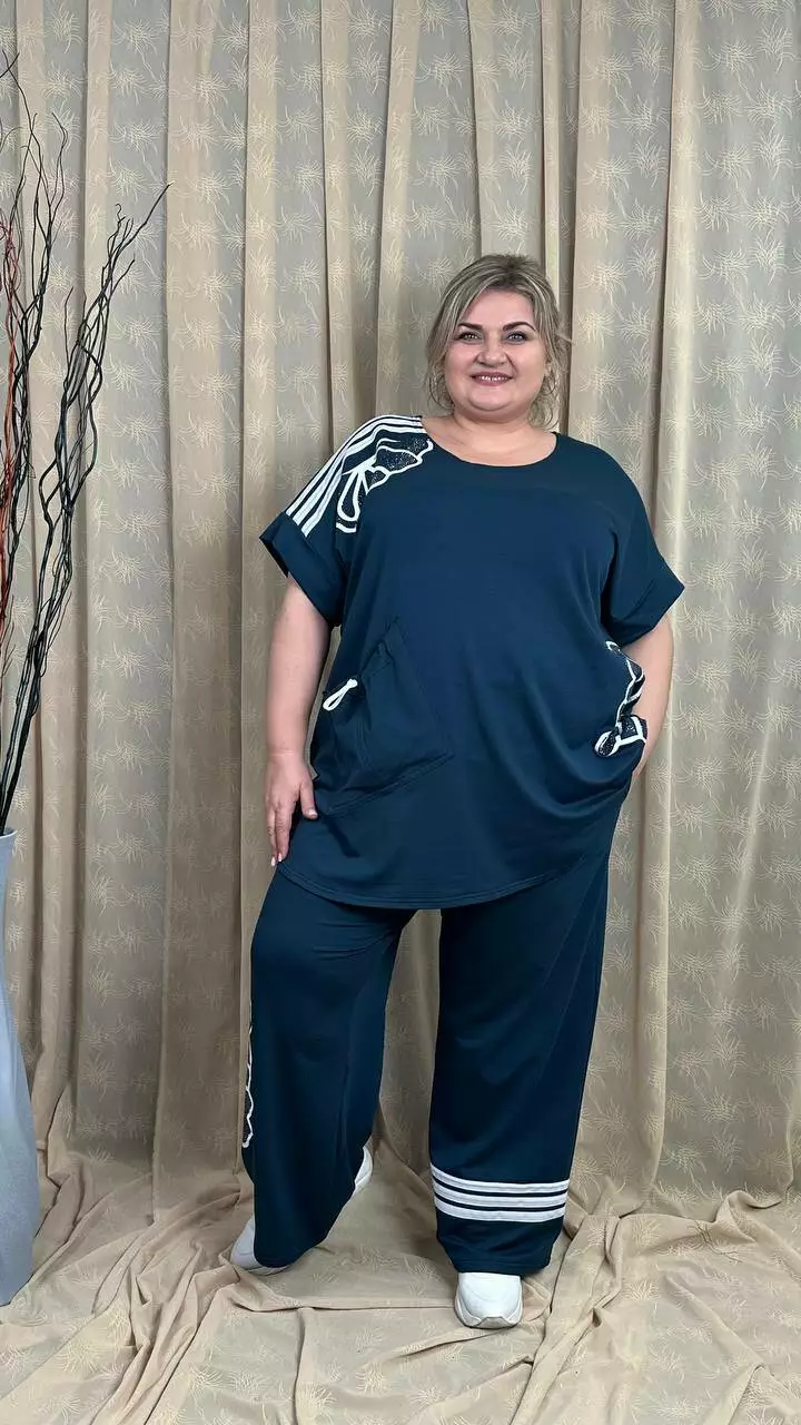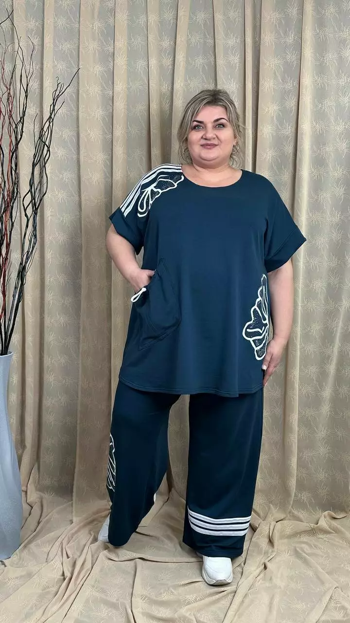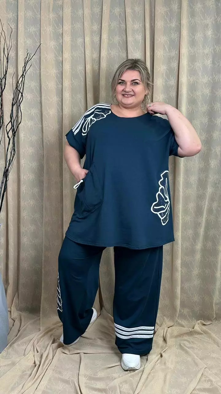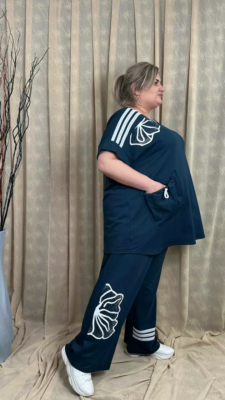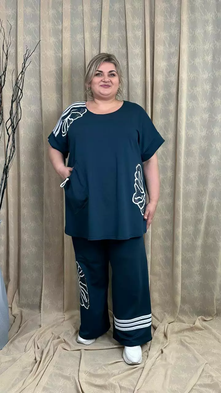 Вільний костюм із трикотажної тканини - двонитка, середньої щільності та гарної розтяжності.
