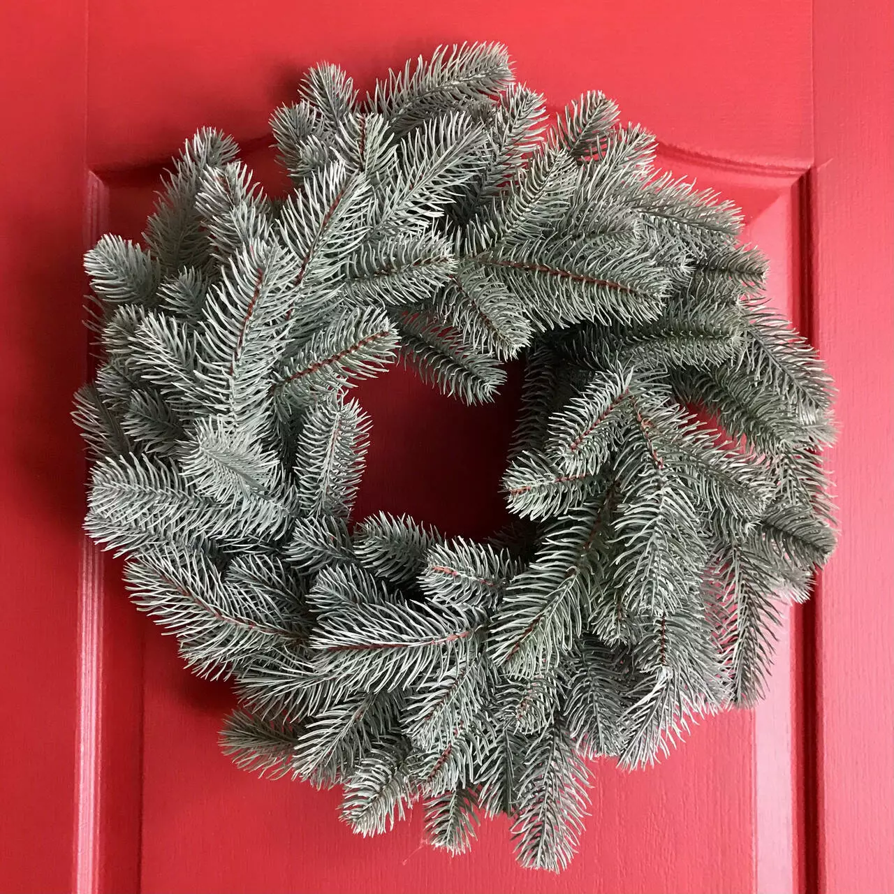Вінки хвойні різдвяні Lux литі d-40 см блакитні (упаковка 10 шт.) — це стильний та елегантний вибір для святкового декору. Кожен вінок виготовлений із високоякісної штучної хвої з об’ємними литими гілочками у 3D-формі, які точно передають колір та текстуру справжньої хвої. Відтінок гілочок натуральний, схожий на природний колір блакитної ялинки — приглушений сіро-блакитний, що надає виробу вишуканого та природного вигляду.