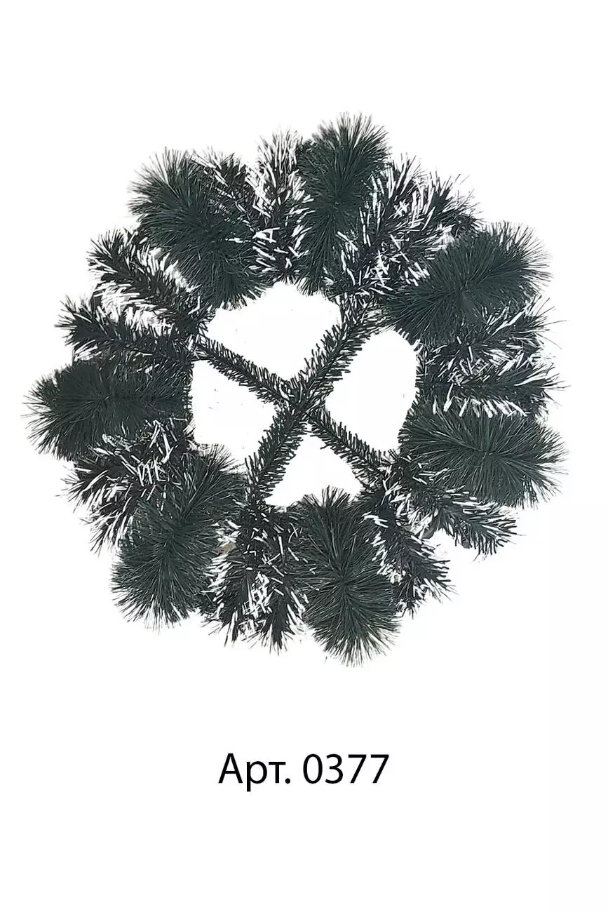 Вінок зі штучної хвої, зроблений у формі кола з йорша та двокольорової хвої, розмір 45*45*5 см.
