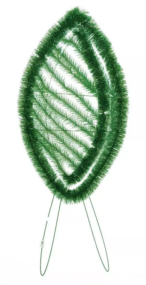Вінок зі штучної хвої, зашитий по діагоналі, з йоршом по краю, розмір 130*54*13 см.