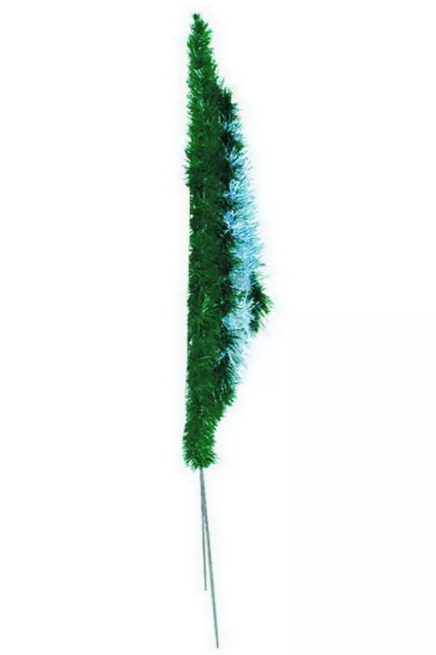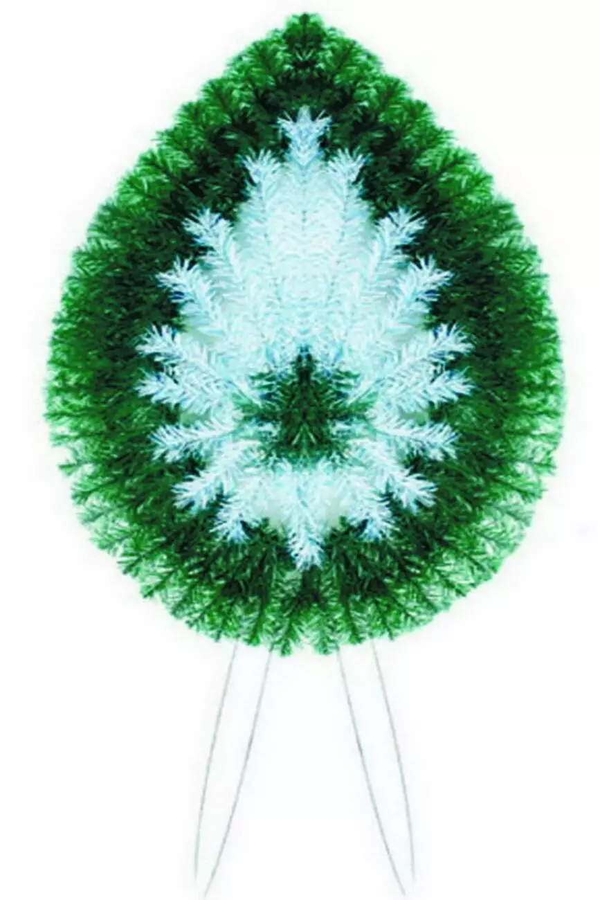 Вінок зі штучної хвої у вигляді краплі з білою хвоєю у центрі вінка, заплетений по колу, розмір 132*65*16 см.