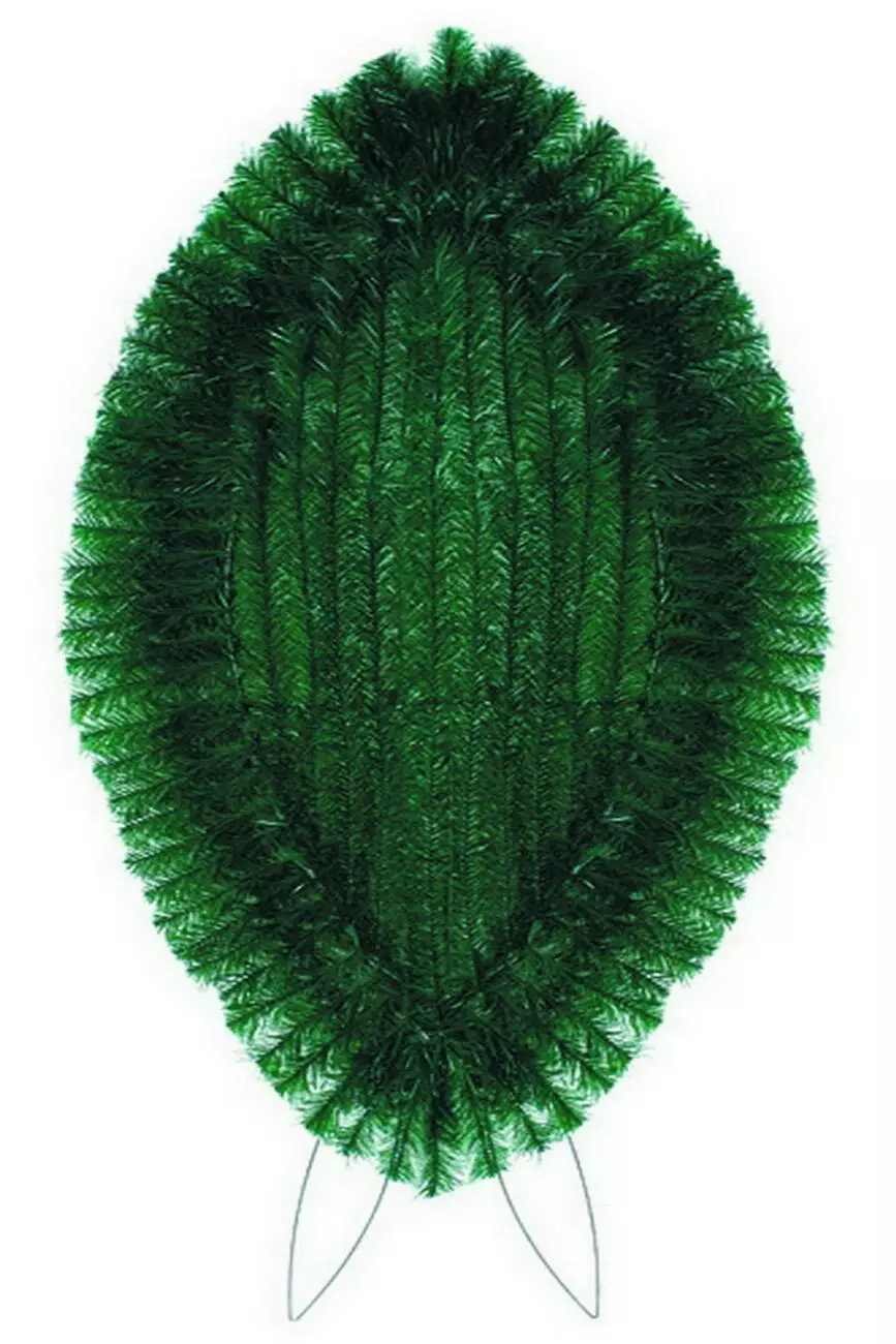 Вінок зі штучної хвої, зашитий по центру, розмір 151*65*18 см.