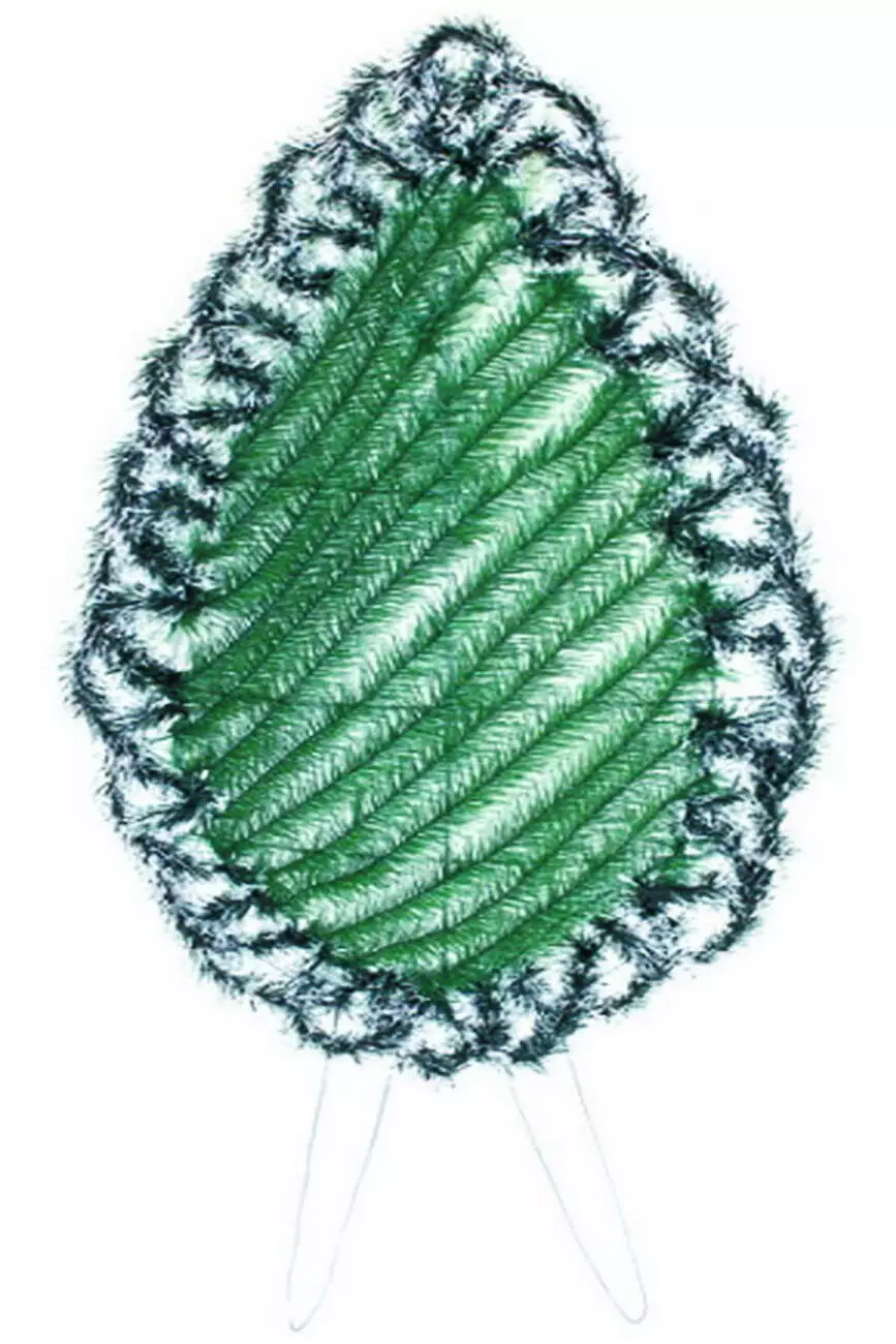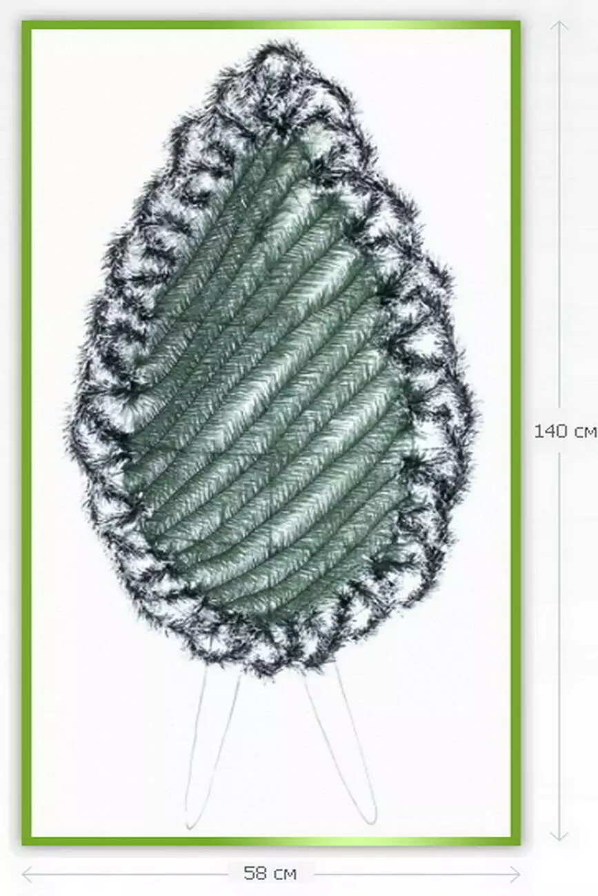 Вінок зі штучної хвої, зашитий по центру, по краю заплетений двокольоровою хвоєю, розмір 140*58*13 см.