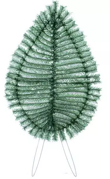 Вінок зі штучної хвої, зашитий горизонтально відрізками хвої, розмір 140*72*13 см.