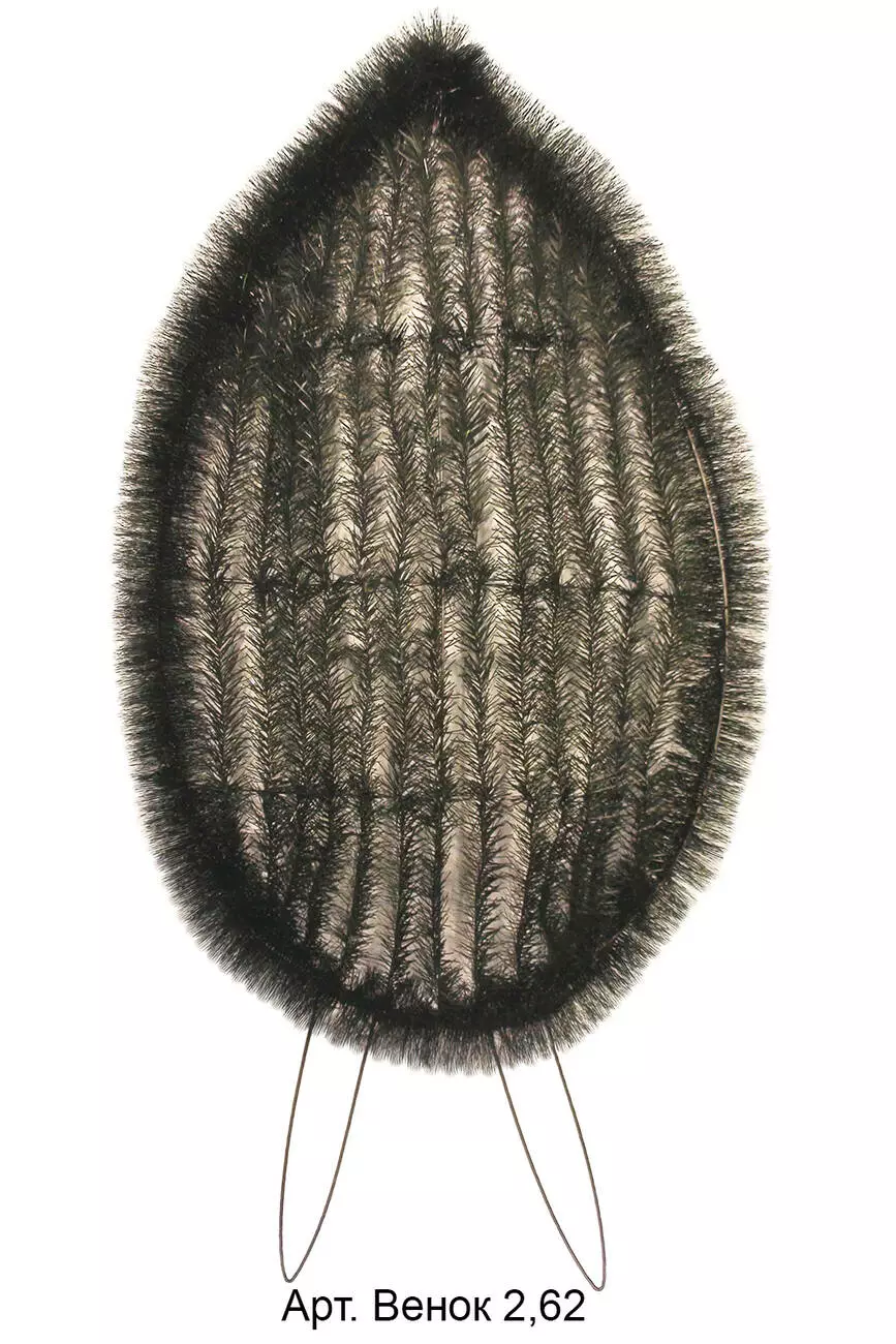 Вінок зі штучної хвої, зашитий вертикально, по краю йорш з білими кінчиками, розмір 138*72*18 см.