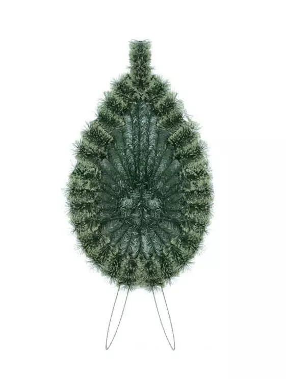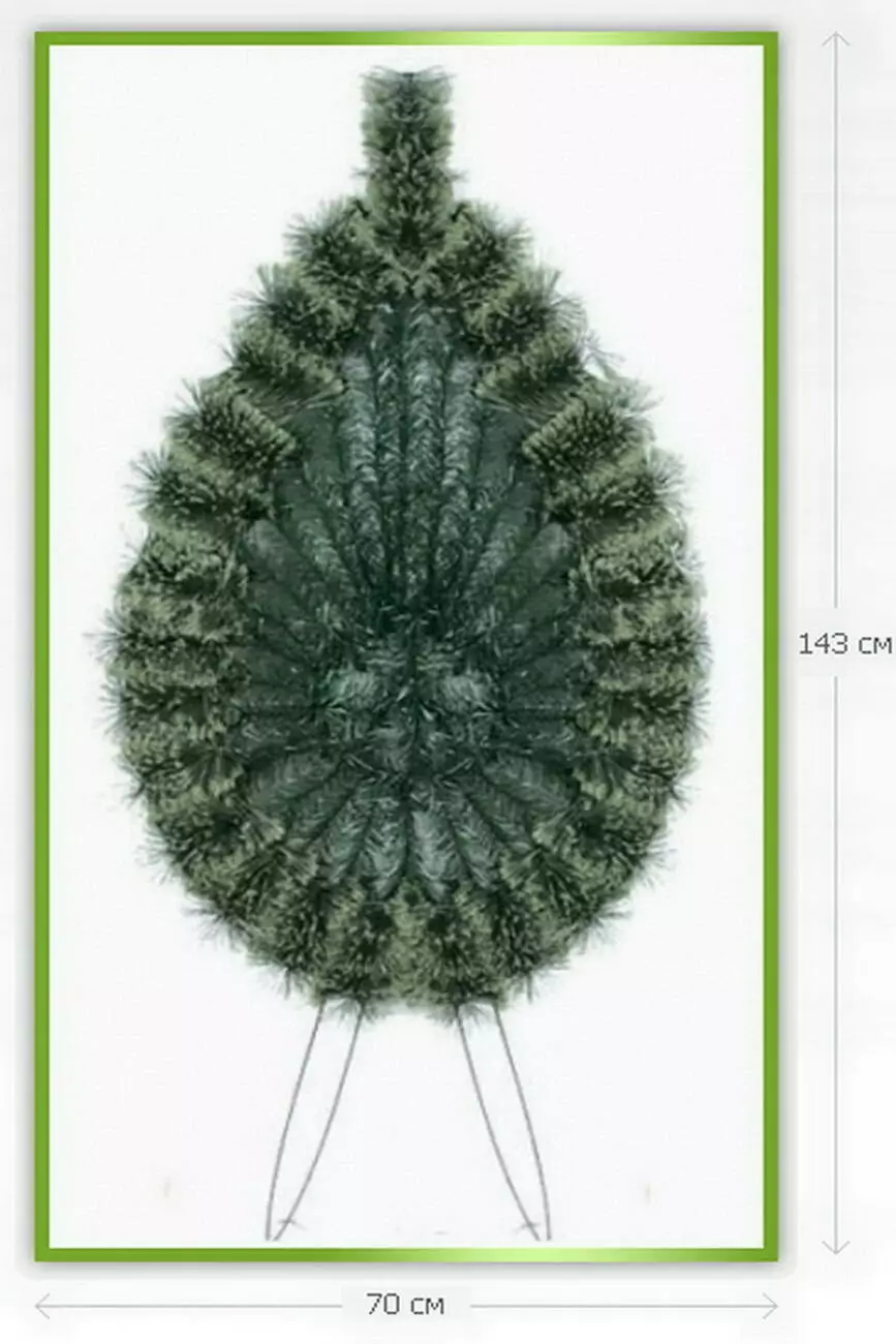 Вінок зі штучної хвої, зашитий по центру, по колу заплетений відрізками йорша, розмір 143*70*16 см.