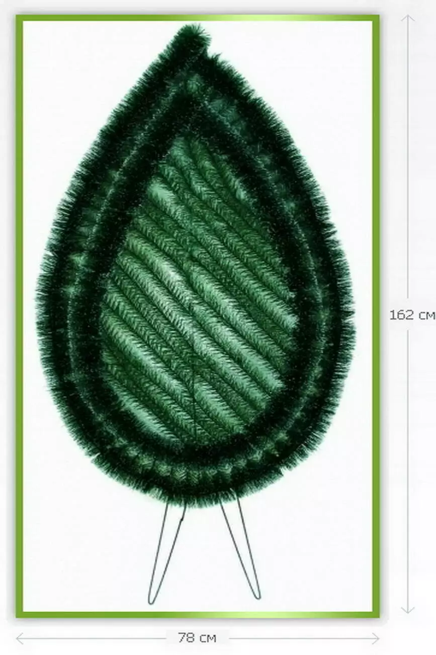 Вінок зі штучної хвої, зашитий по діагоналі, з подвійним йоршом по краю, розмір 162*78*18 см.