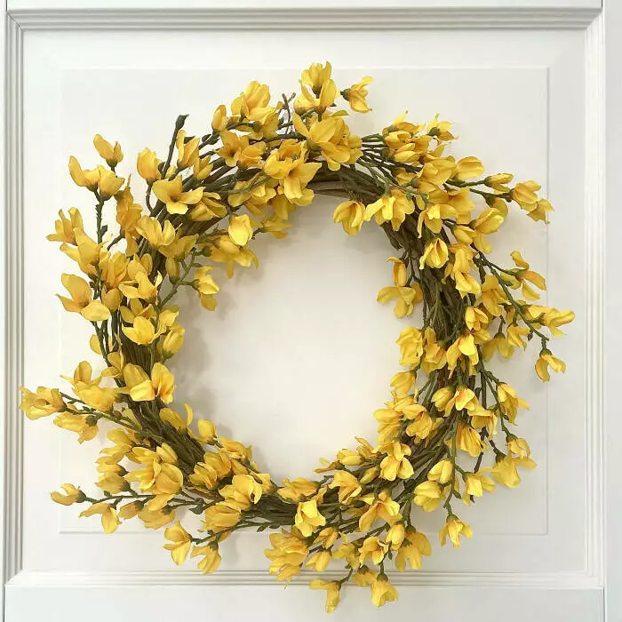Використовуйте його для створення вражаючого акценту на ваших вхідних дверях, де яскраві квіти форзиції стануть справжнім символом приходу весни. Цей віночок виглядає чудово в будь-якому інтер'єрі, створюючи яскравий фокус в будь-якому приміщенні.