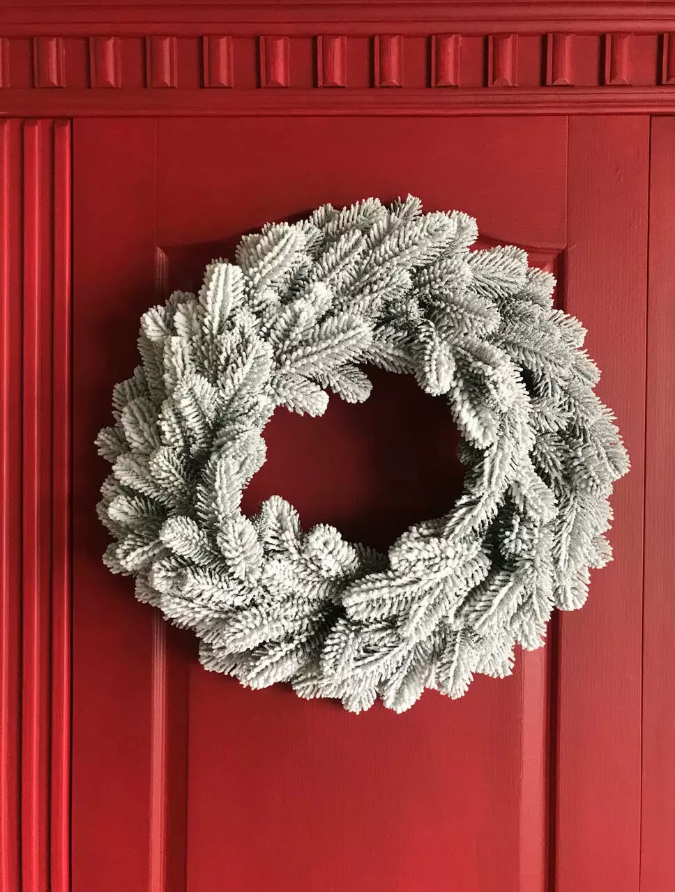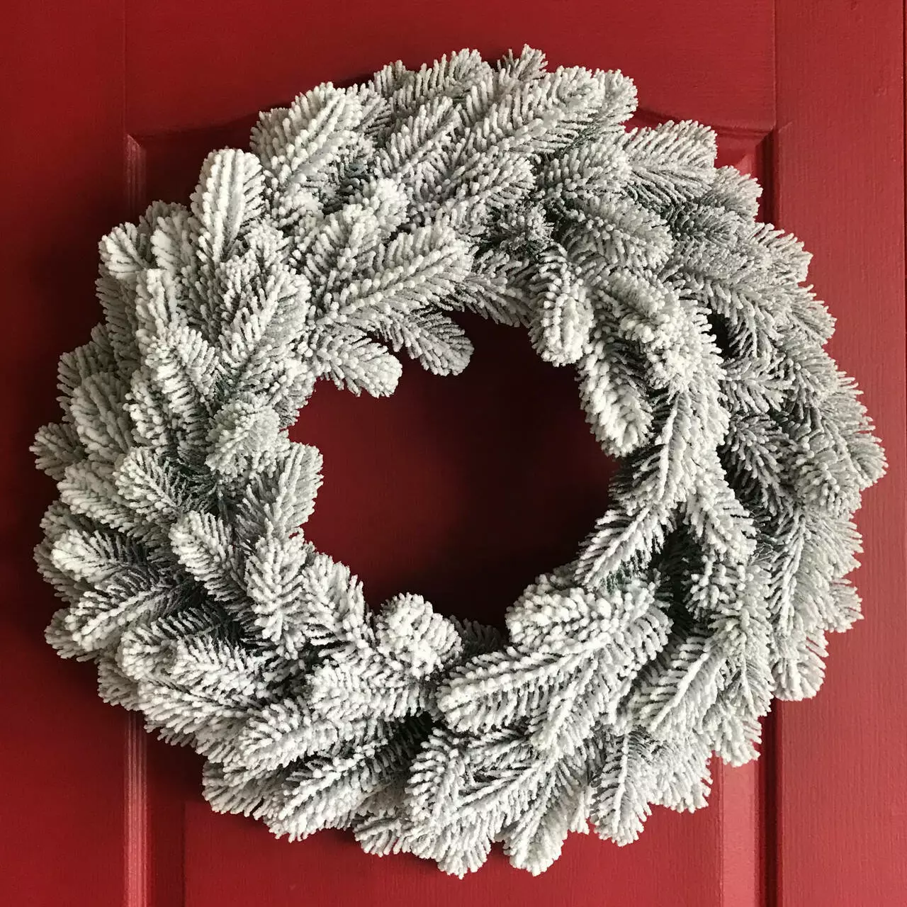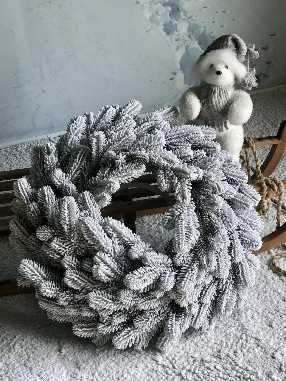Декоративний різдвяний вінок виготовлений з переплетених гілок штучної ялинки. Він виготовлений з 100% литої хвої, а його голочки нагадують живу ялинку, але вони більш м'які та не колючі.