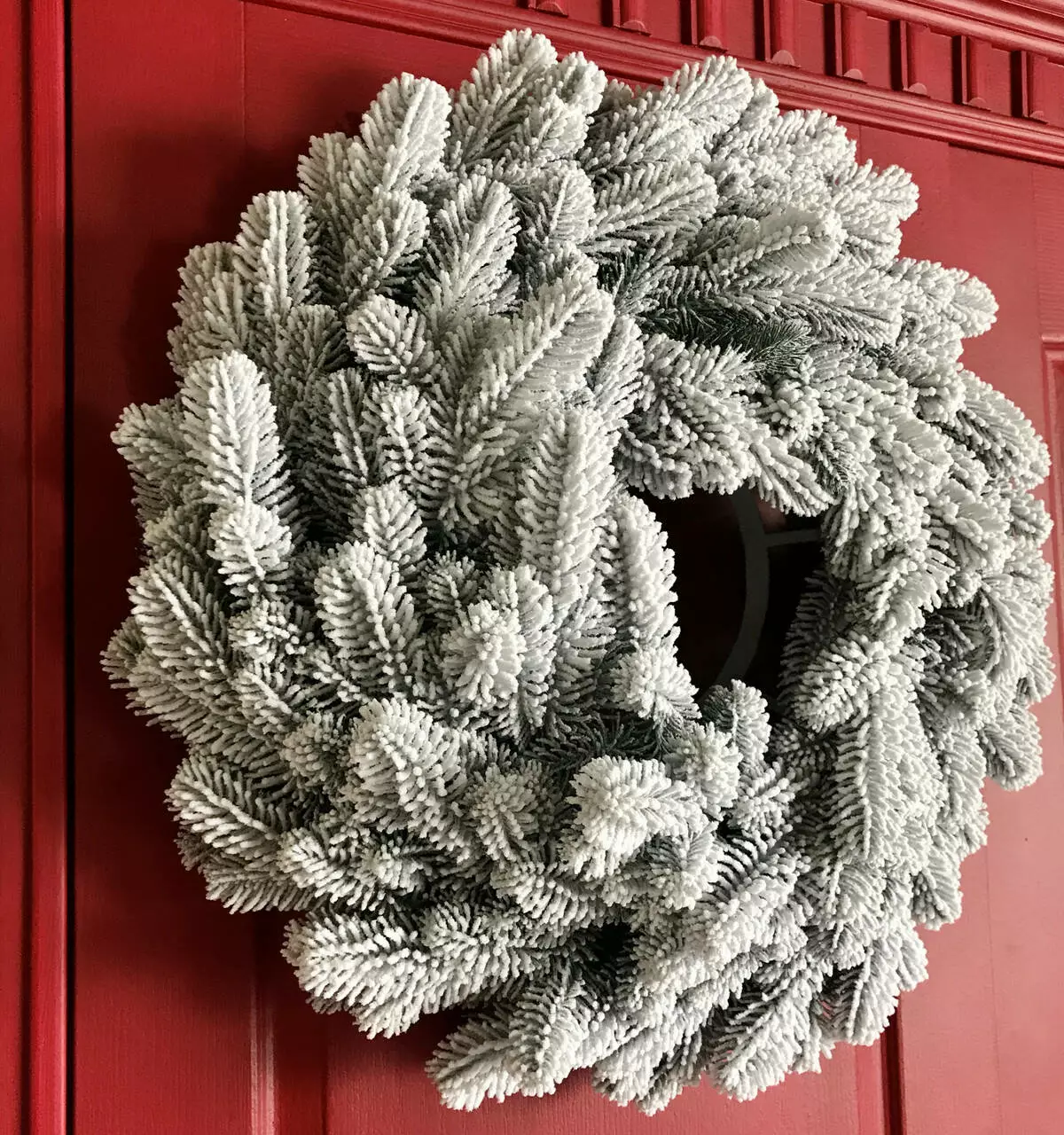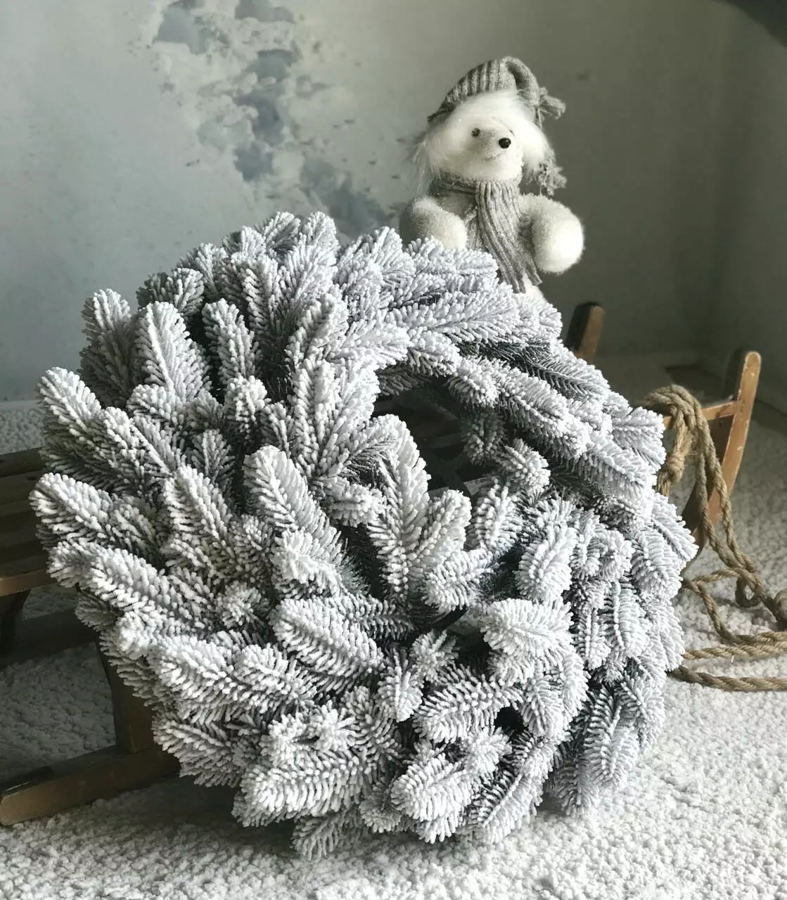 Декоративний різдвяний вінок виготовлений з переплетених гілок штучної ялинки. Він виготовлений з 100% литої хвої, а його голочки нагадують живу ялинку, але вони більш м'які та не колючі.