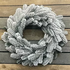 Декоративний різдвяний вінок виготовлений з переплетених гілок штучної ялинки. Він виготовлений з 100% литої хвої, а його голочки нагадують живу ялинку, але вони більш м'які та не колючі. Об'ємне густе напилення на вінку, реалістично імітує сніг, який тільки що впав на гілки пухнастими пластівцями. Матеріалом розпилення є натуральна бавовна, він екологічний і не має запаху, безпечний для дітей і дорослих.