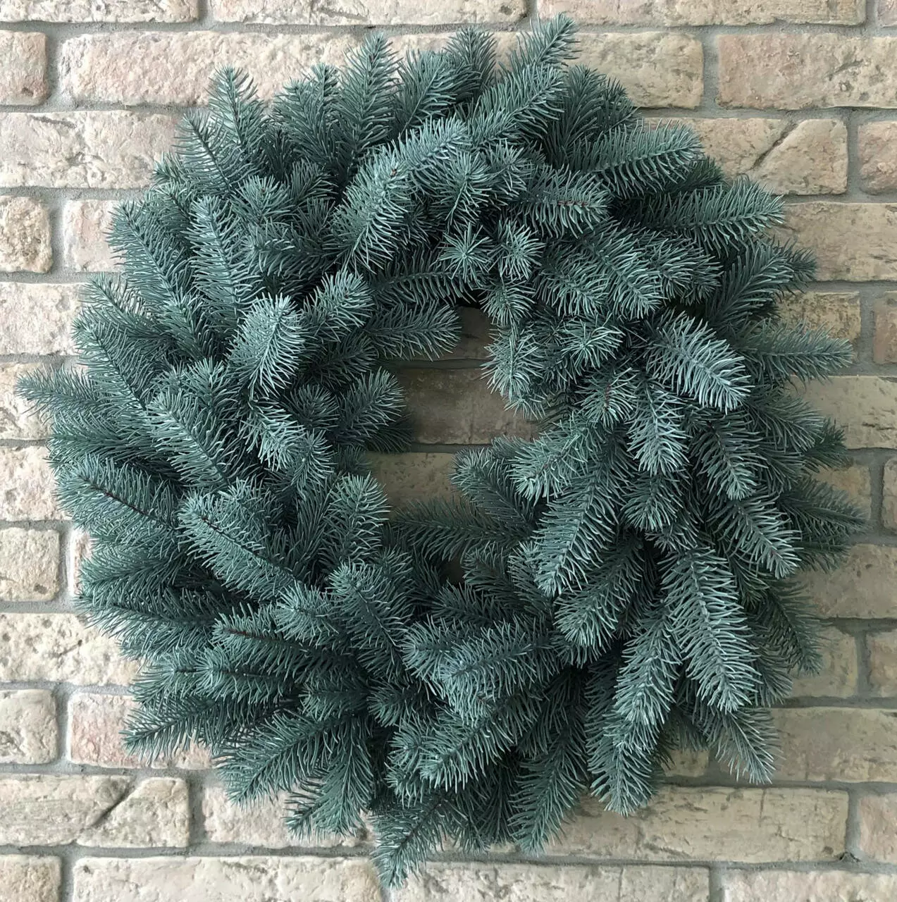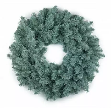 Новорічний декоративний вінок діаметром 55 см являє собою переплетені гілки штучної ялинки. Виготовлений з 100% литої хвої. Голочки як у живої ялинки, але м'які і не колючі. Без декора.