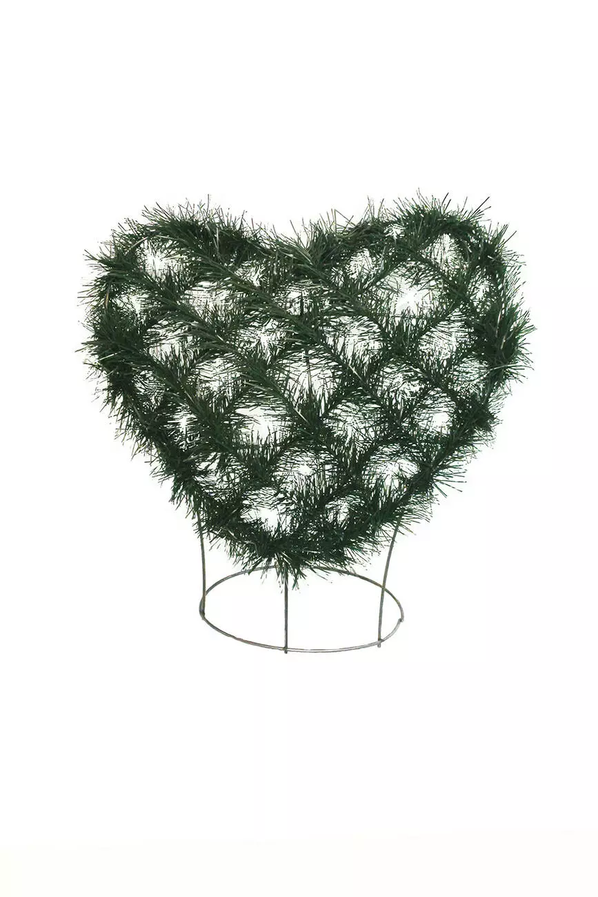 Вінок зі штучної хвої у формі серця, заплетений сіточкой, розмір 34*40*20 см.