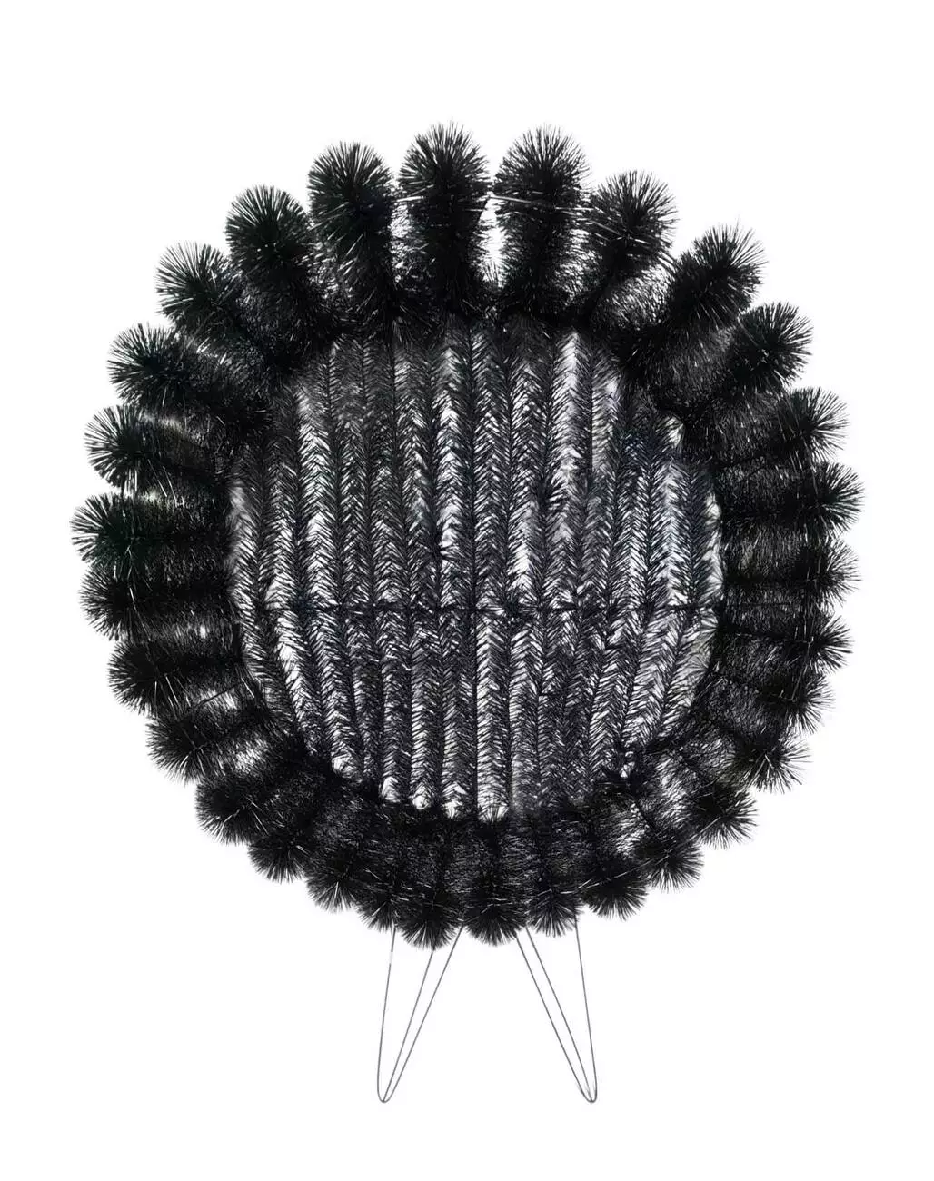 Вінок зі штучної хвої у формі кола на ніжках, обмотаний йоршом, по