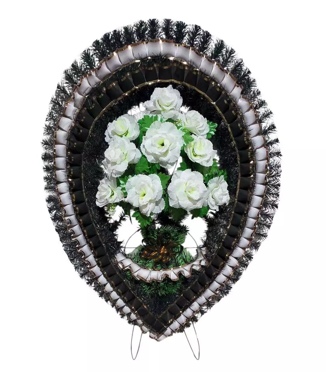 Ритуальний вінок зі штучної хвої, розміром 125*80*17 см. Вінок