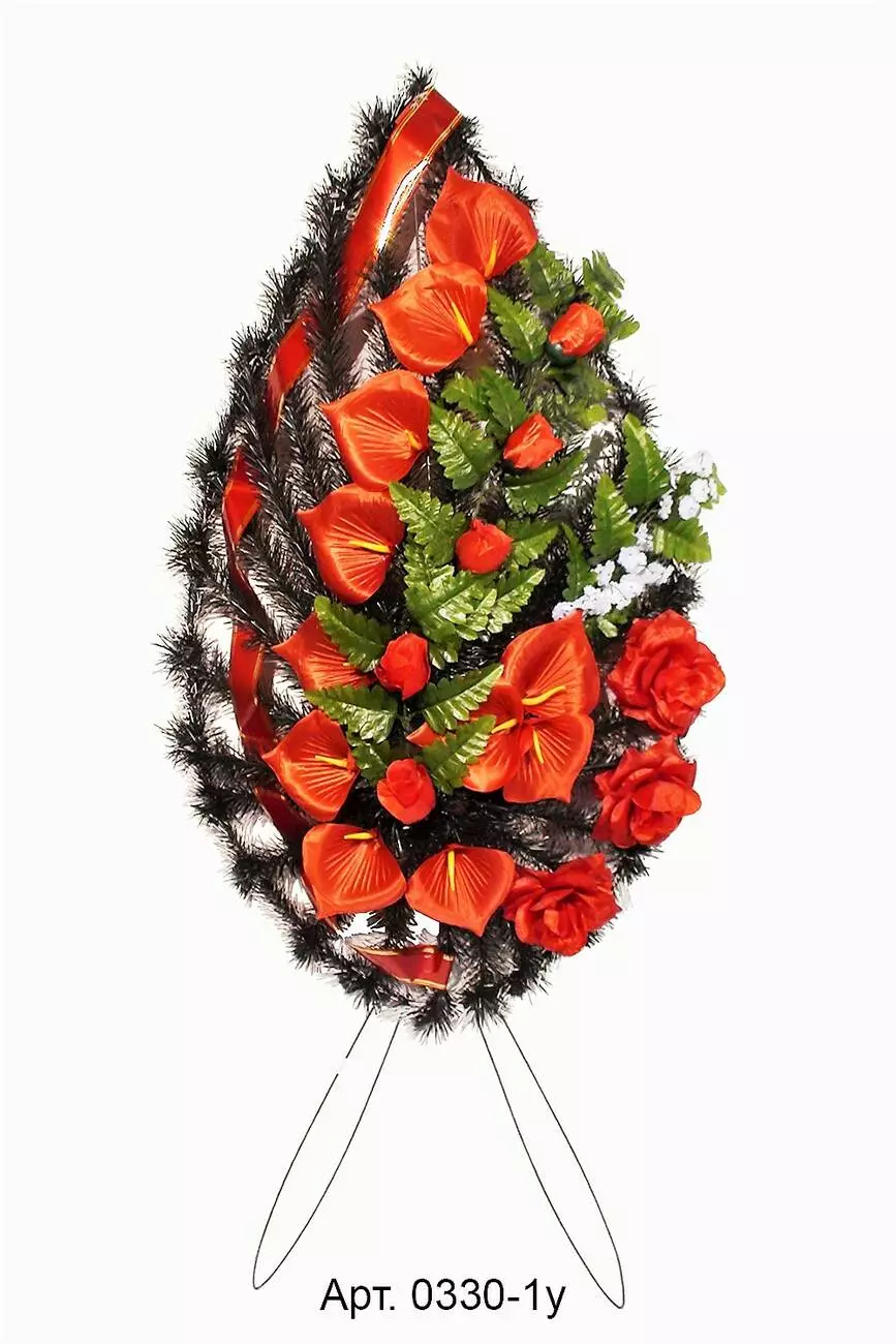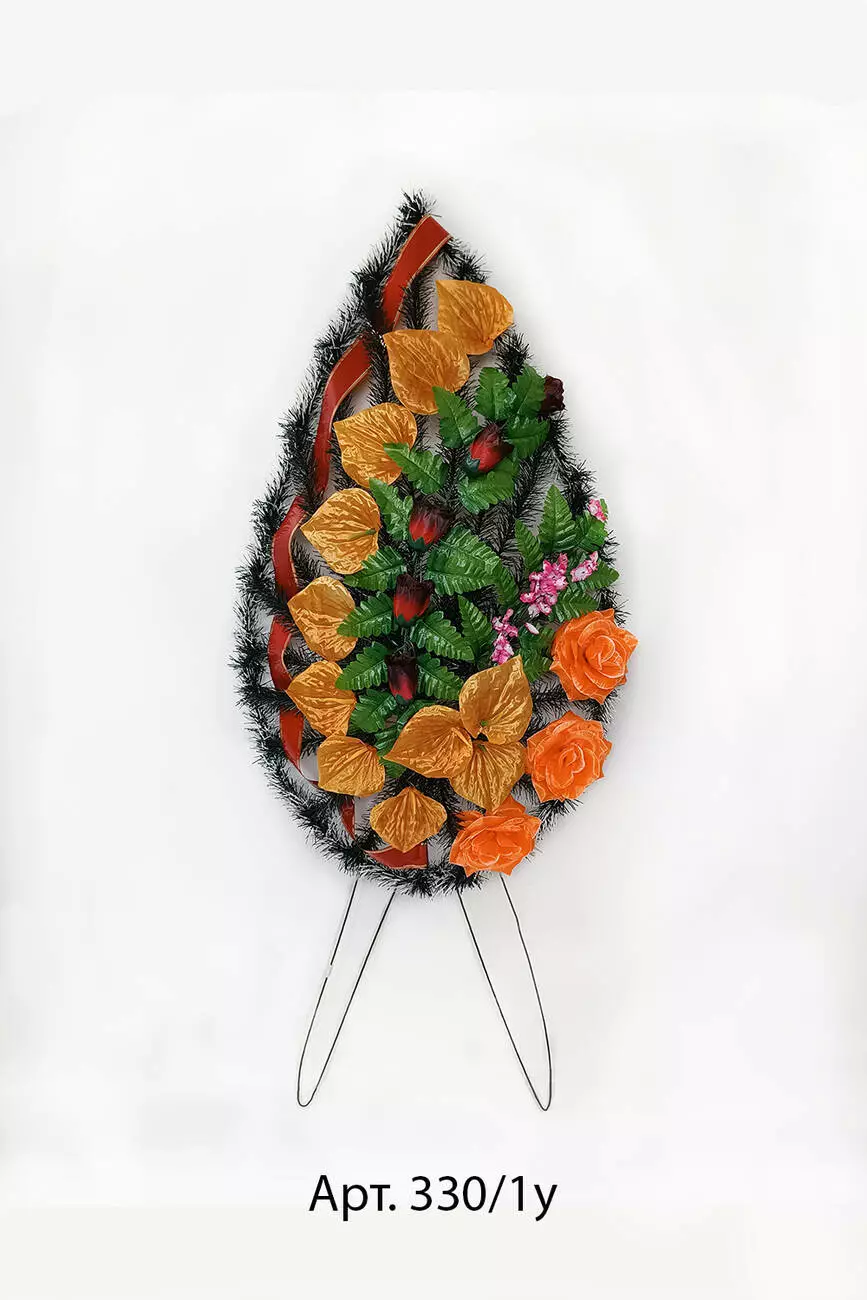 Ритуальний вінок зі штучної хвої розміром 143*55*12 см. Вінок