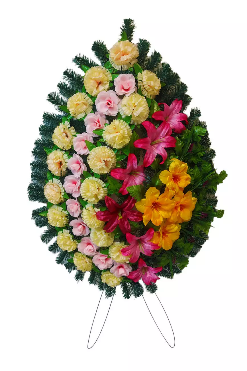 Ритуальний вінок зі штучної хвої розміром 147*71*22 см. Вінок