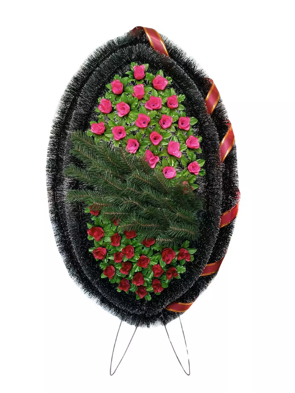 Ритуальний вінок зі штучної хвої розміром 158*84*18 см. Вінок