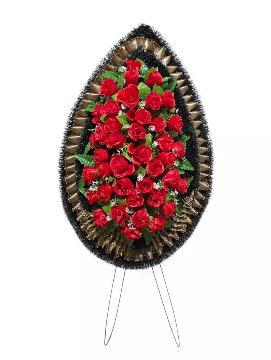 Ритуальний вінок зі штучної хвої розміром 162*78*18 см. Вінок