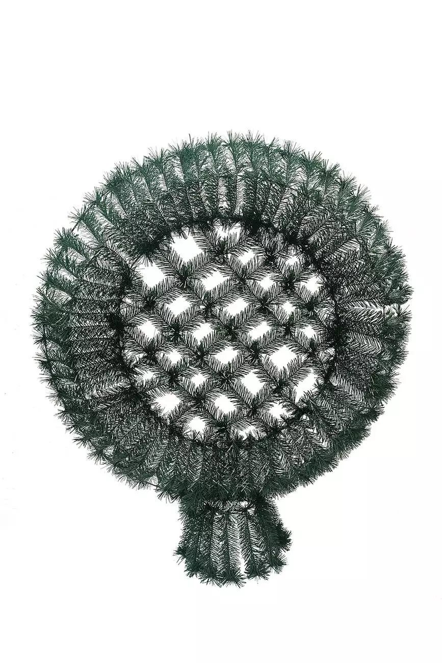 Вінок зі штучної хвої у формі кола зашитого по середині сіткою,