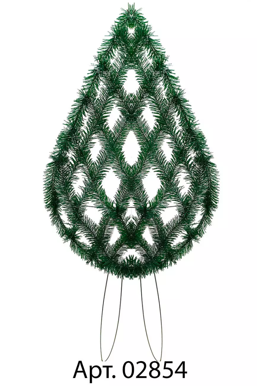 Вінок зі штучної хвої на ніжках, у формі краплі, зашит сіточкой з двокольорової хвої, розмір 125*47*10 см.