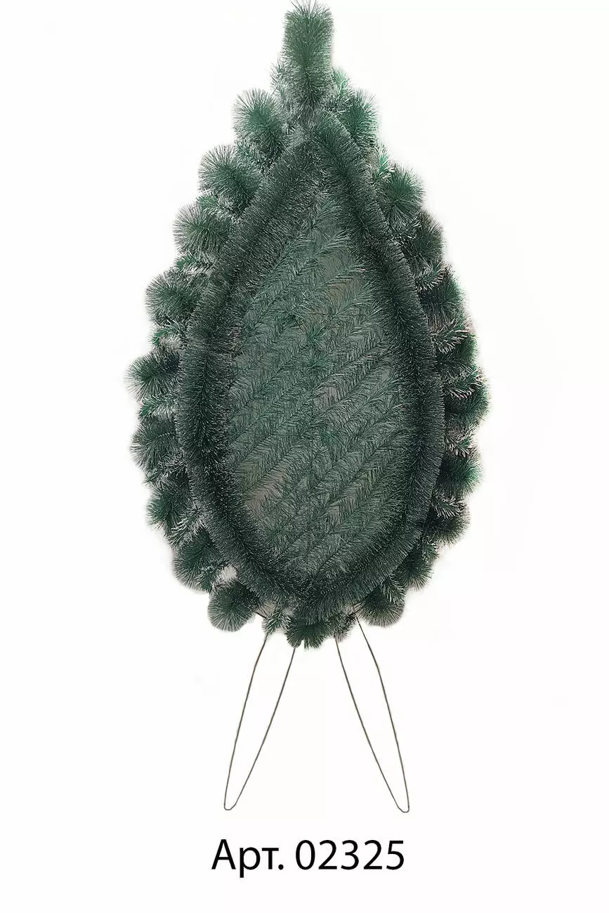 Вінок зі штучної хвої на ніжках, зашитий у центрі по діагоналі, з
