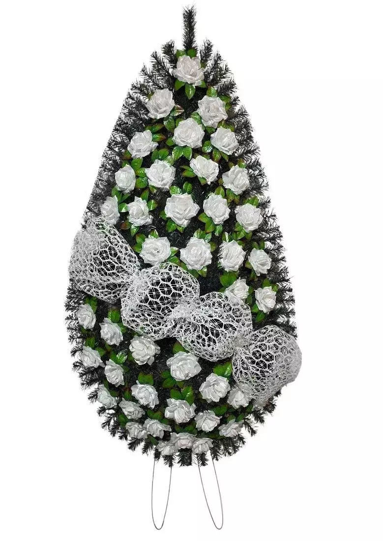 Ритуальний вінок зі штучної хвої розміром 185*85*22 см. Вінок