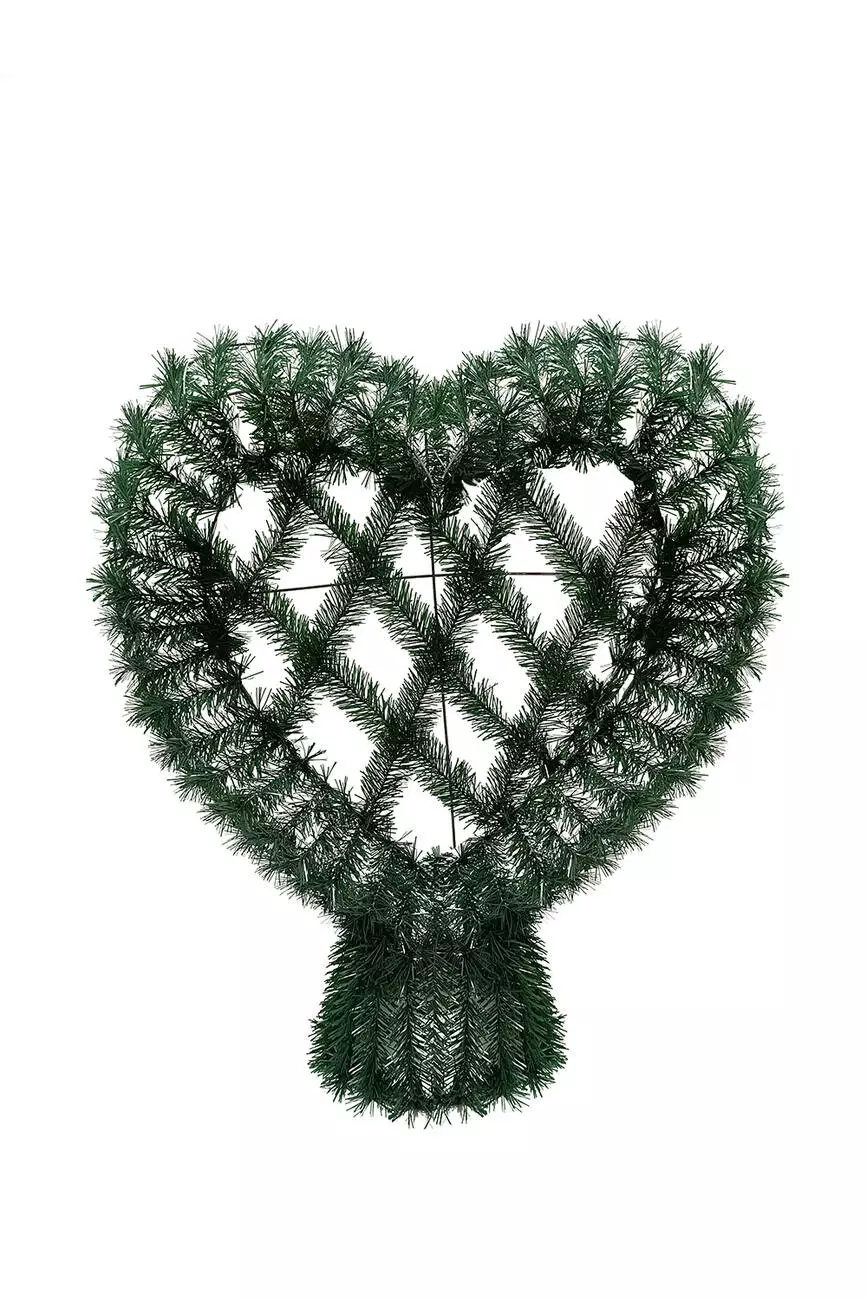 Вінок зі штучної хвої у вигляді серця на підставці, заплетений по центру сіточкой, розмір 78*72*29 см.