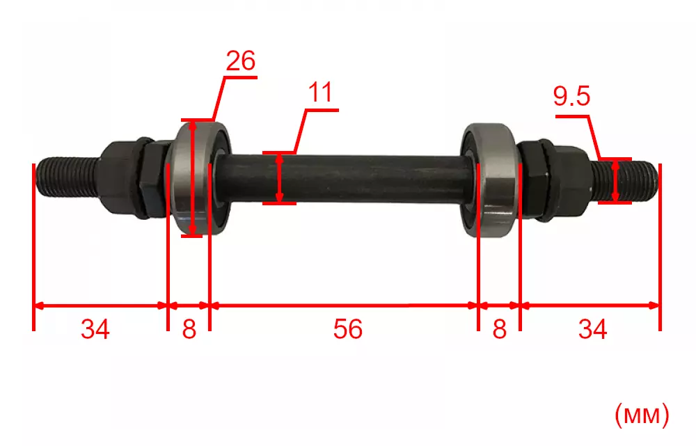 Вісь передня CZ-60 на промислових підшипниках 6000 2RS (3/8" x 140 мм)