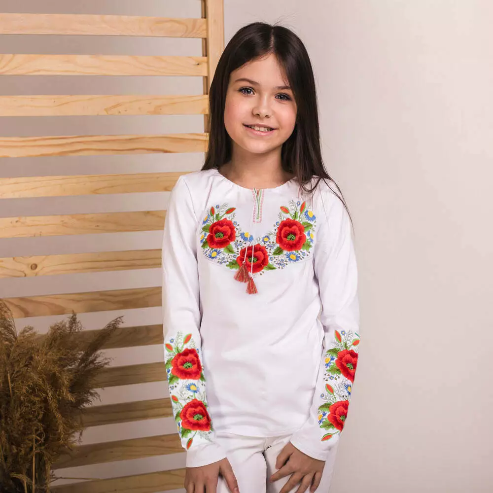 Вишиванка для дівчинки на довгий рукав "Маків цвіт" - це однозначно базова річ гардеробу кожної принцеси. Вишиту футболку для дівчинки прикрашає традиційна лаконічна вишивка з квітковим та рослинним орнаментом. Традиційно вишивка прикрашає груди та рукави вишиванки. Що стосується вишиванки то вона неймовірно практична, легка та універсальна по стилю, адже чудово впишеться із будь-яким одягом. Дана модель не мнеться, чудово переться, швидко висихає, та не створює проблем із прасуванням.