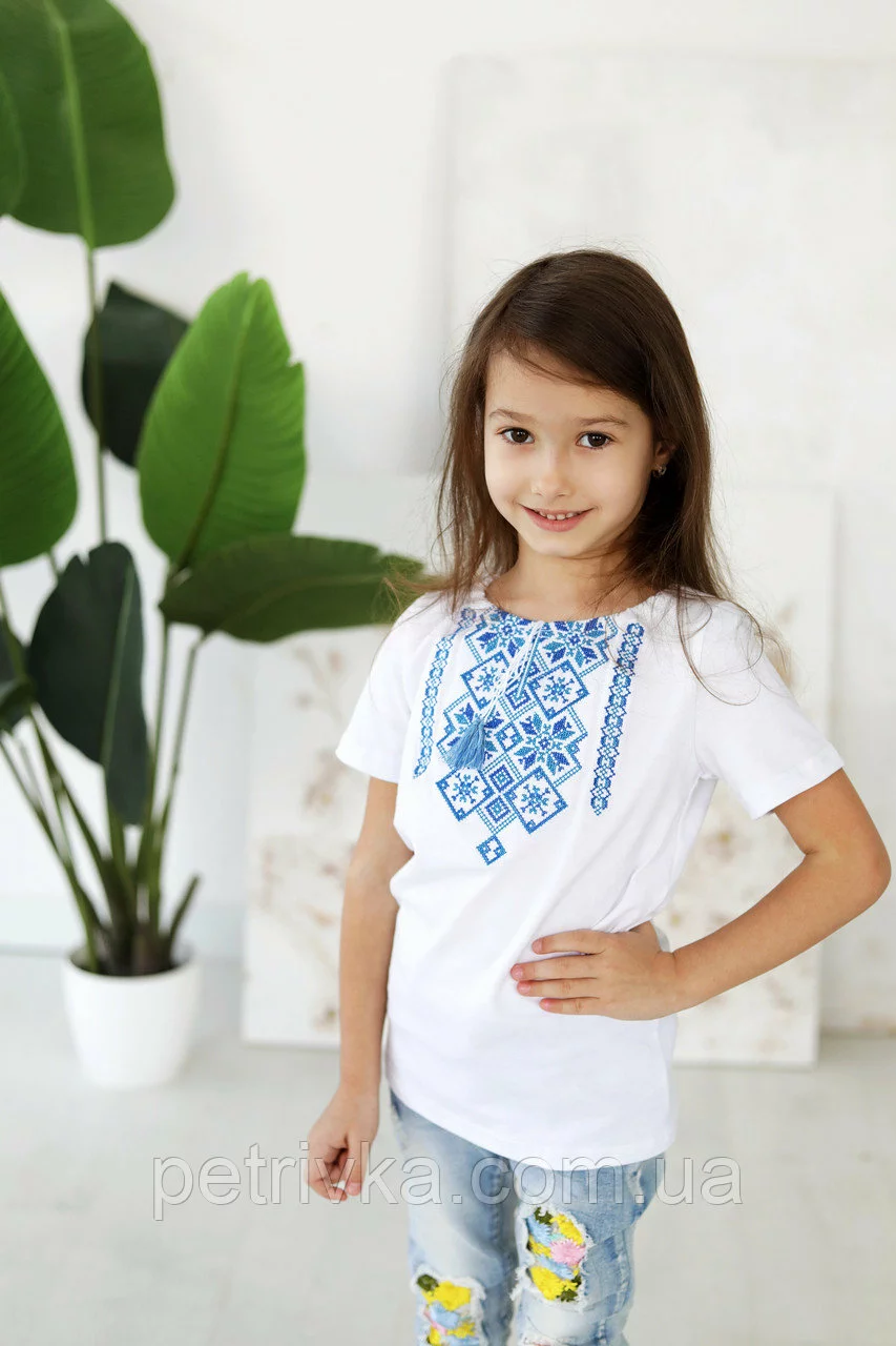 Вишита футболка з візерунками для дівчинки