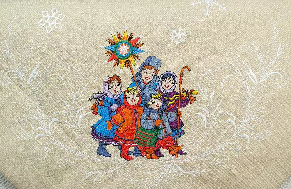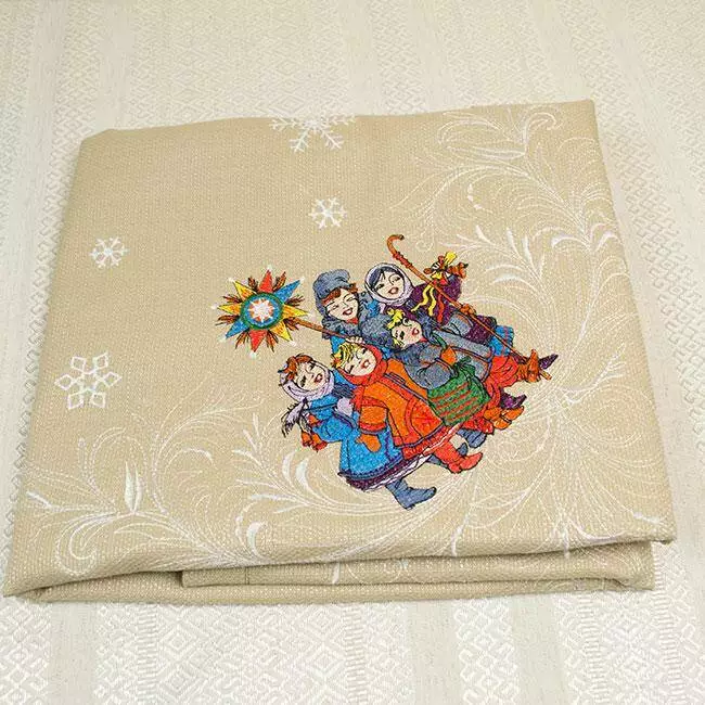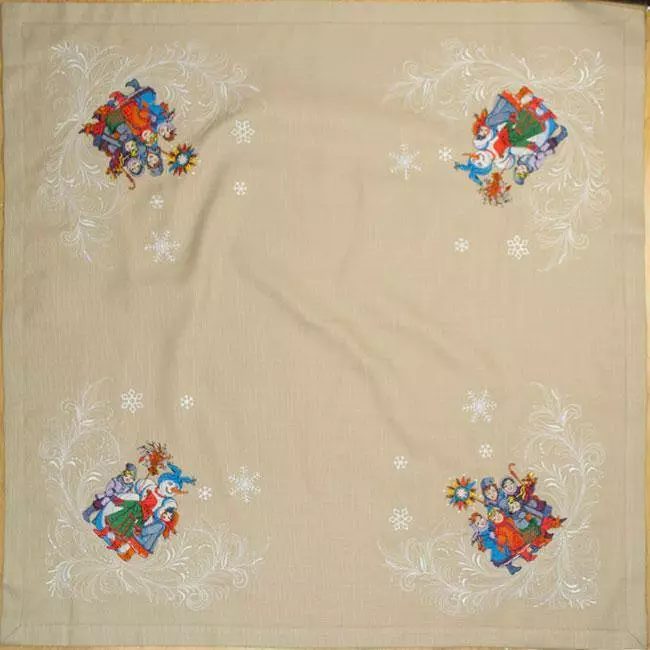 Вишита Новорічна скатертина "Вертеп" 90х90 див.