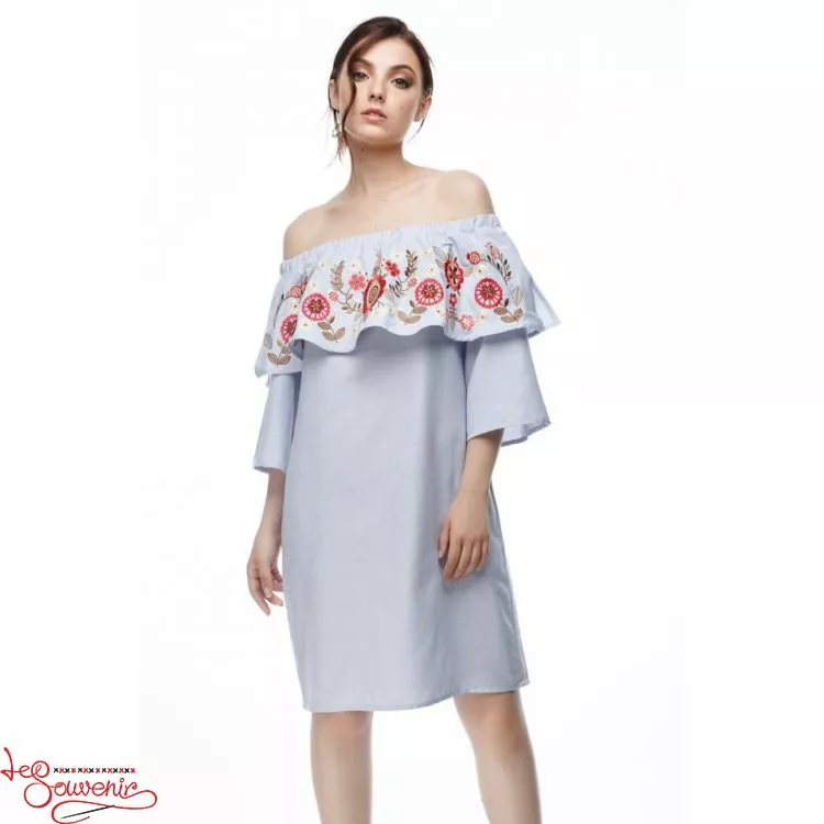 Жіноча сукня, чудово виконана на делікатній блакитній