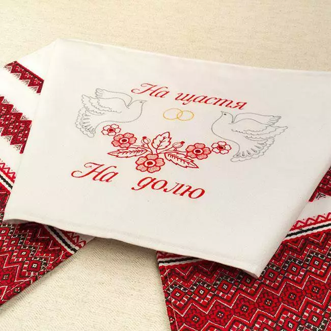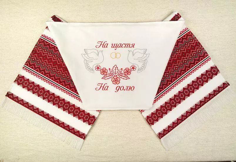 Весільним рушником прикрашають ікони, якими благословляють молодят батьки. Коровай завжди несуть на вишитому рушнику. Молодим кладуть весільний рушник "На щастя, на долю" під ноги, і звичайно ж використовують весільний рушник для зв'язування рук.